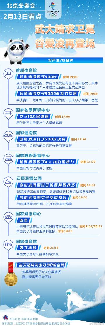 【#武大靖的卫冕之战# #谷爱凌再次登场#】北京冬奥会进入下半程,13日将在5个项目中产生7枚金牌,中国军团将在传统优势项目短道速滑中力拼两金。