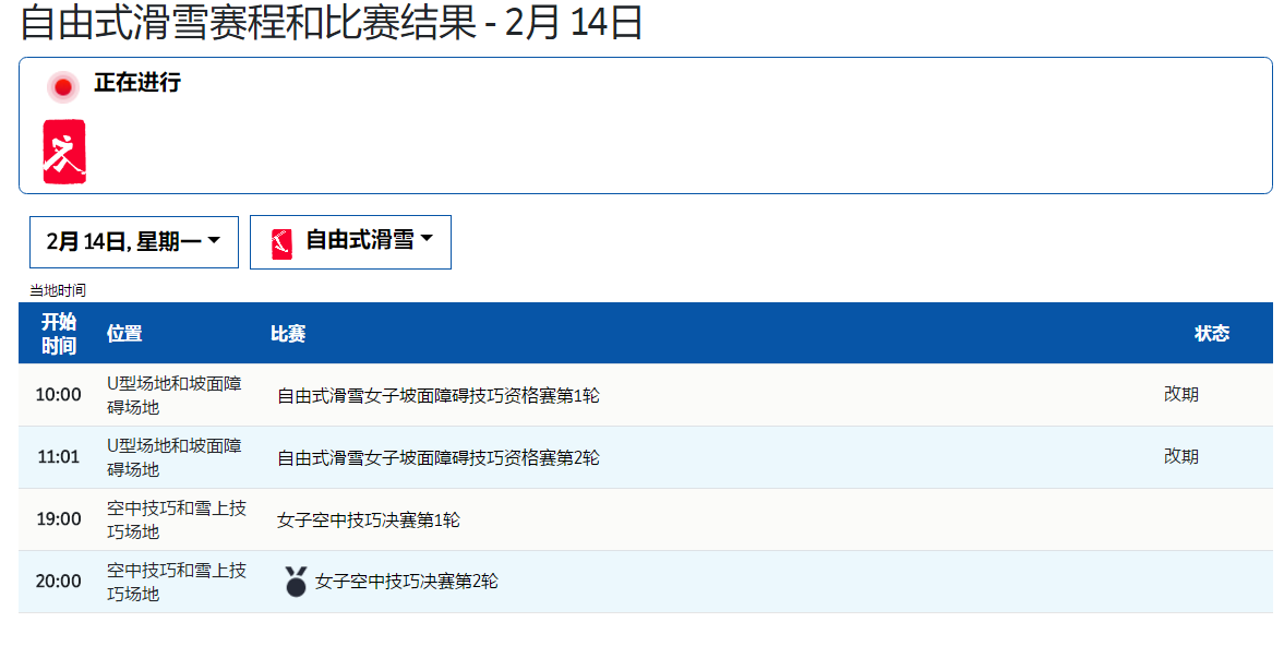 刚刚,延期后的北京冬奥会自由式滑雪女子坡面障碍技巧资格赛正式确定时间。2月14日10时和11时01分,两轮资格赛将先后进行;而该项目的决赛则将于2月15日9时30分开始进行。