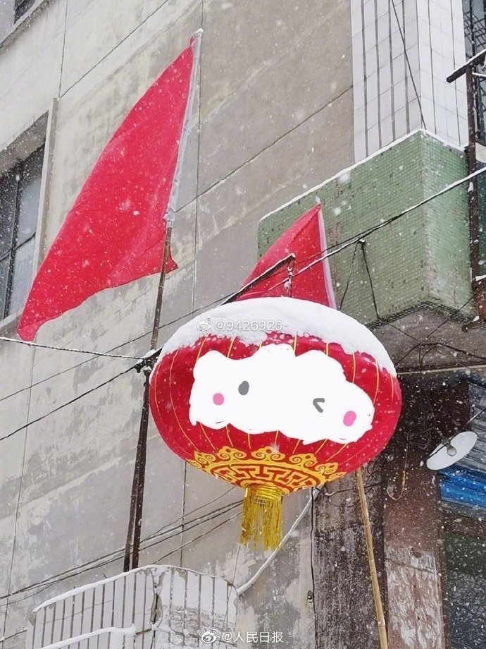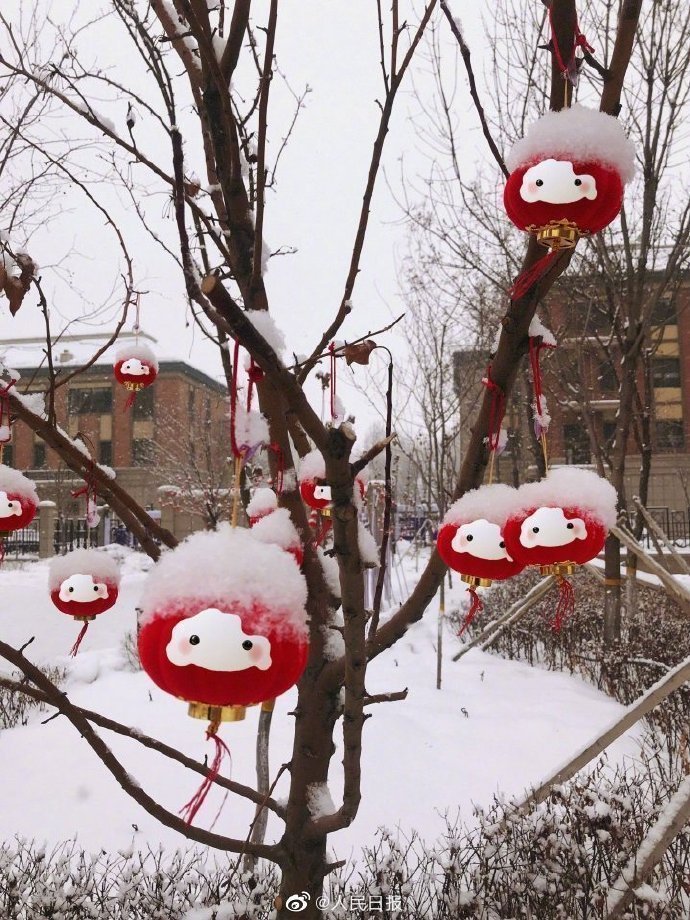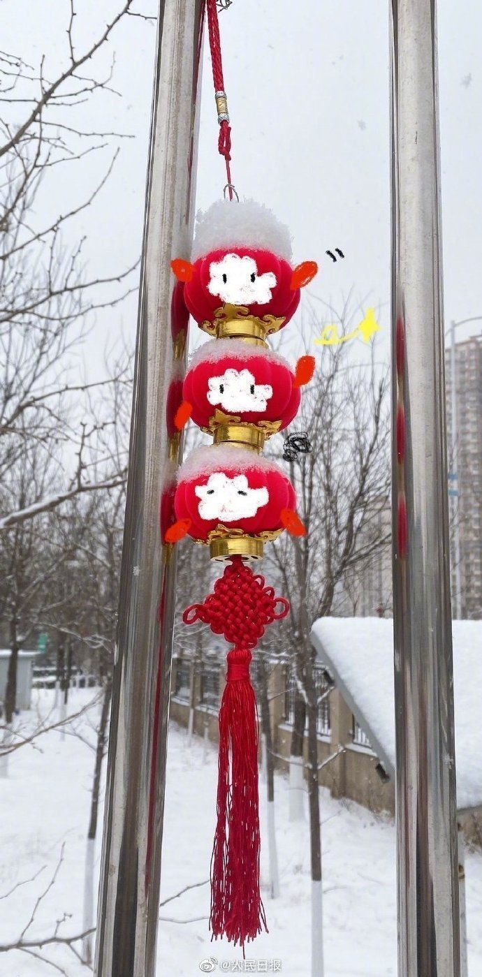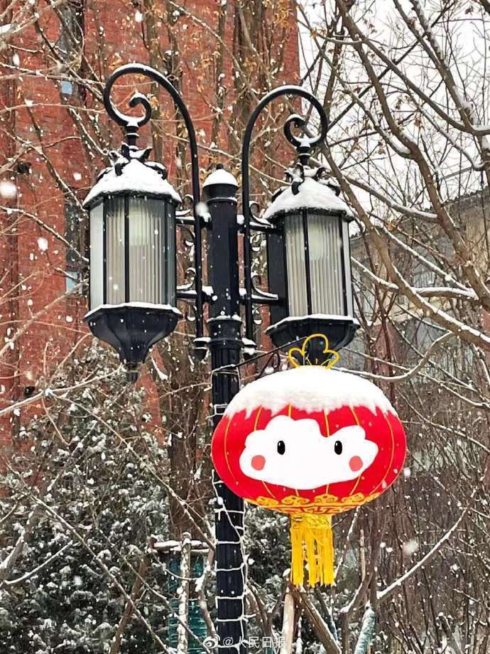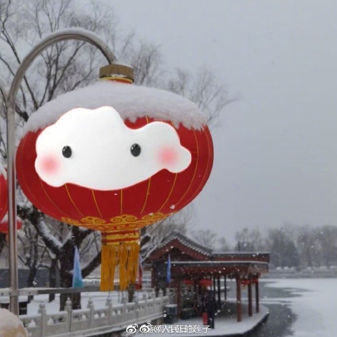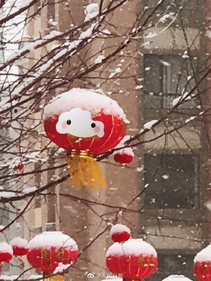 今天,北京下雪,满大街的红灯笼被白雪覆盖,“秒变”雪容融。从红灯笼到雪容融需要几步?网友P图野生雪容融:好可爱,想和雪容融贴贴!