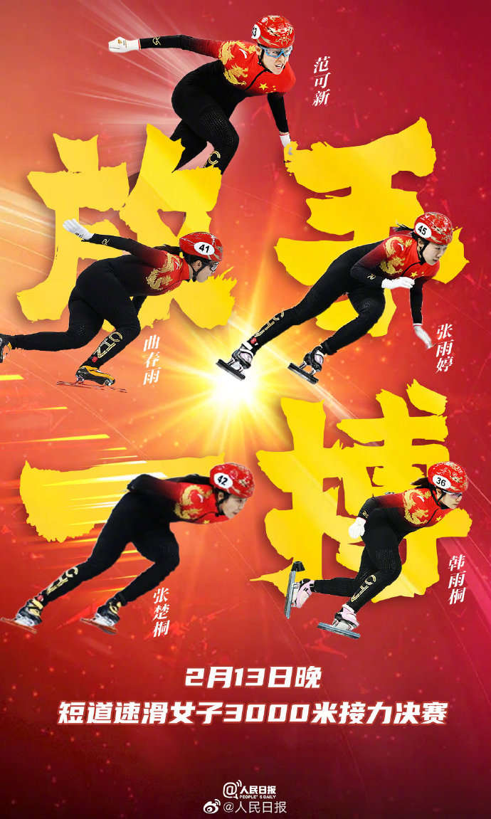 今晚,北京冬奥会短道速滑女子3000米接力决赛将进行,期待中国姑娘们放手一搏、再创佳绩!