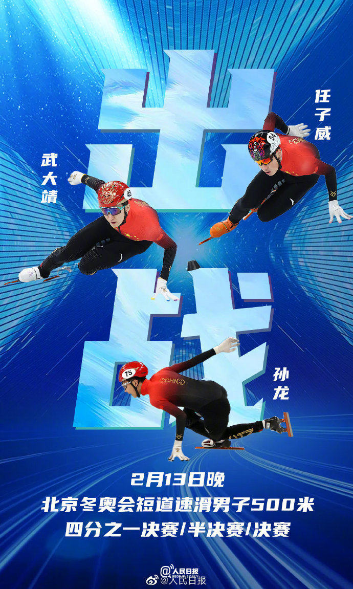 今晚19时,北京冬奥会短道速滑男子500米将进行四分之一决赛/半决赛/决赛,中国选手武大靖、任子威、孙龙即将出战。
