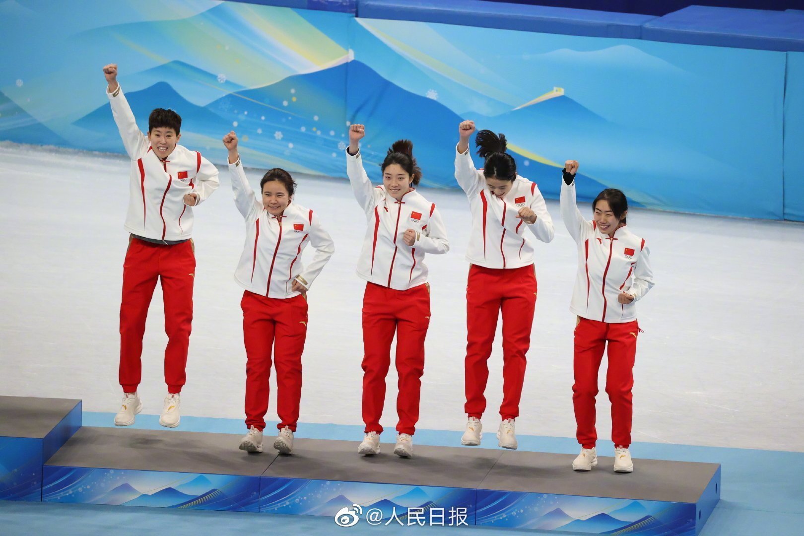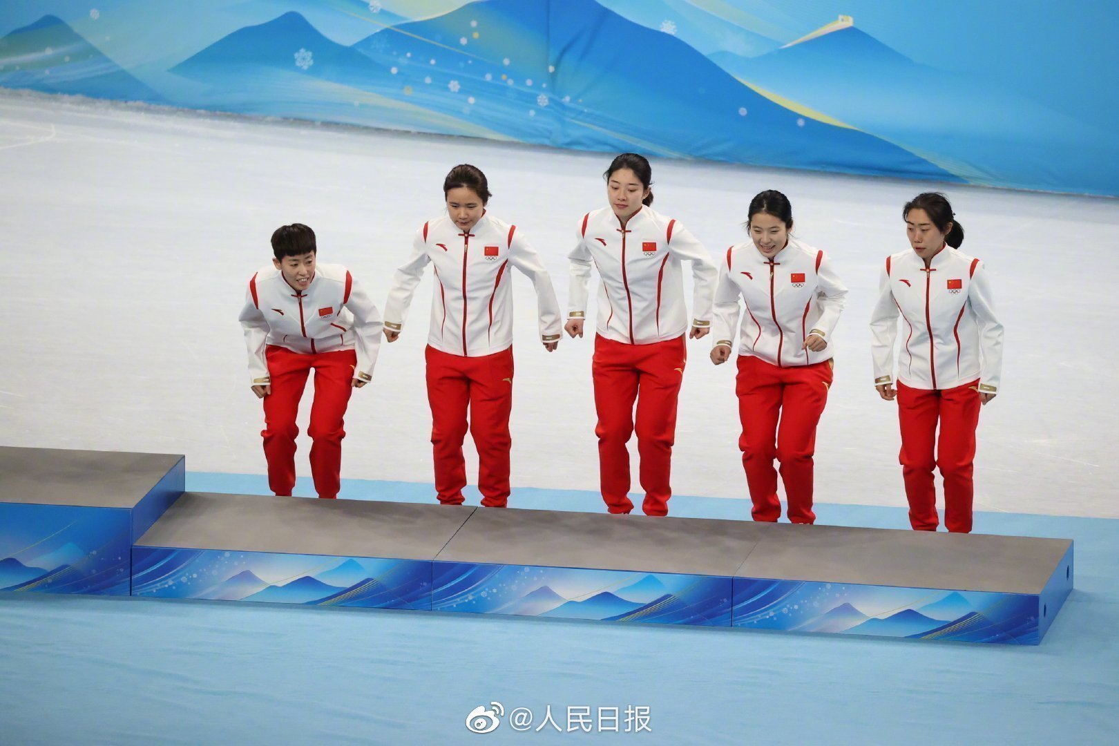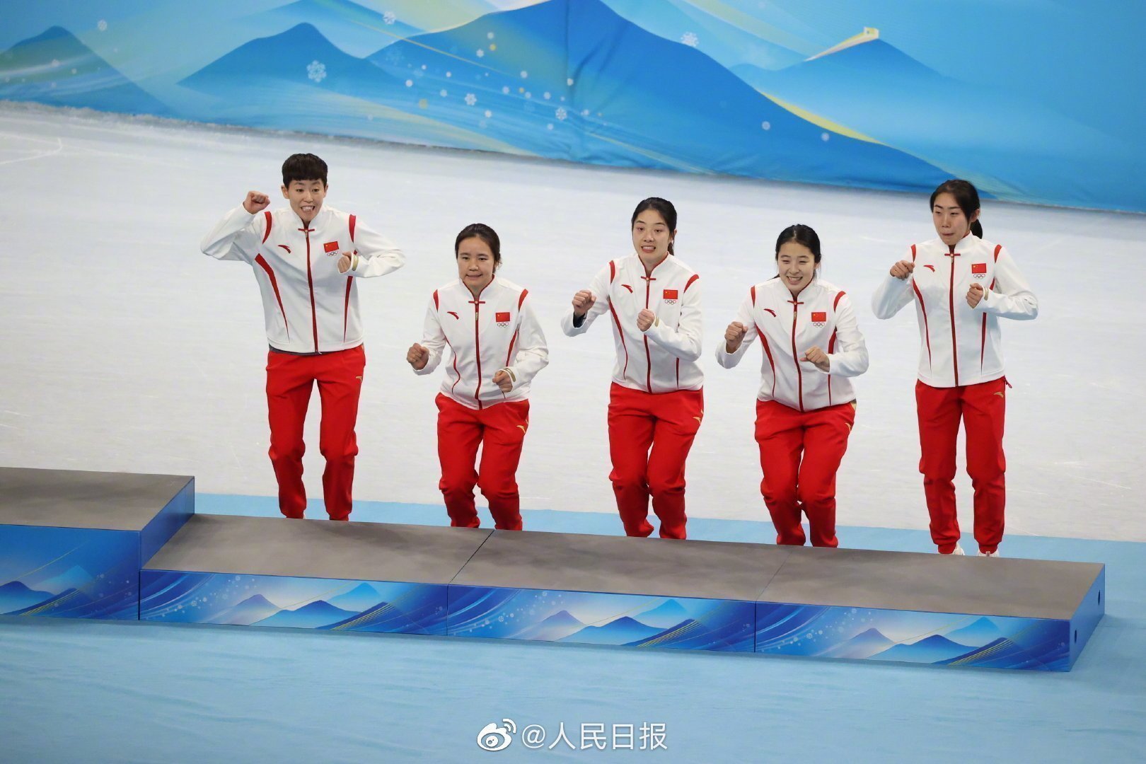 中国队短道速滑女子3000米接力摘铜,赛后,中国姑娘们跳上领奖台,手举金墩墩,向观众们微笑示意。恭喜范可新、韩雨桐、曲春雨、张雨婷、张楚桐!
