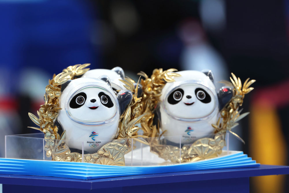 图为在颁发礼品仪式上拍摄的北京2022年冬奥会吉祥物“冰墩墩”。新华社记者王建威摄