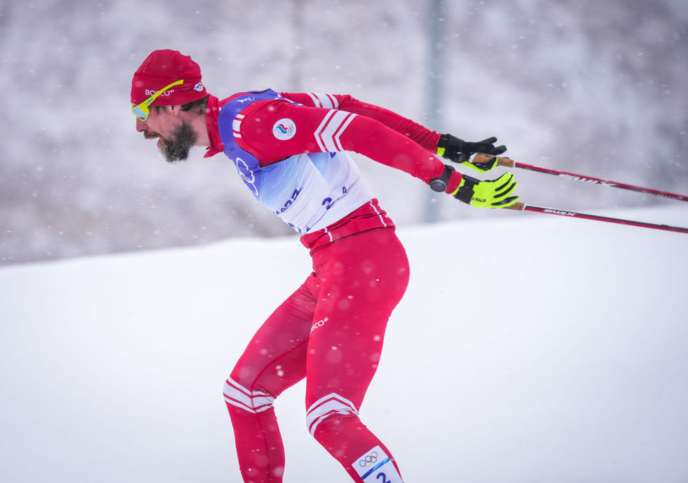2月13日,冠军俄罗斯奥委会队选手谢尔盖·乌斯秋戈夫在北京冬奥会越野滑雪男子4×10公里接力比赛中。新华社记者王松摄