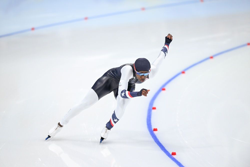 2月13日,美国选手埃林·杰克逊在北京冬奥会速度滑冰女子500米决赛中。新华社记者武巍摄