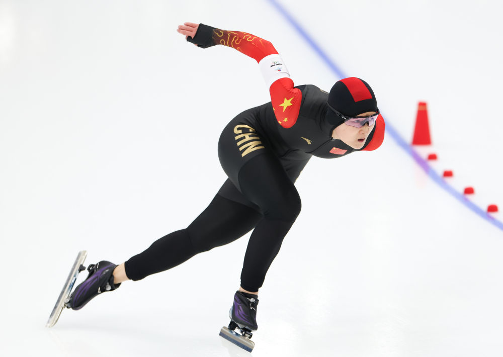 2月13日,中国选手金京珠在北京冬奥会速度滑冰女子500米决赛中。新华社记者程婷婷摄
