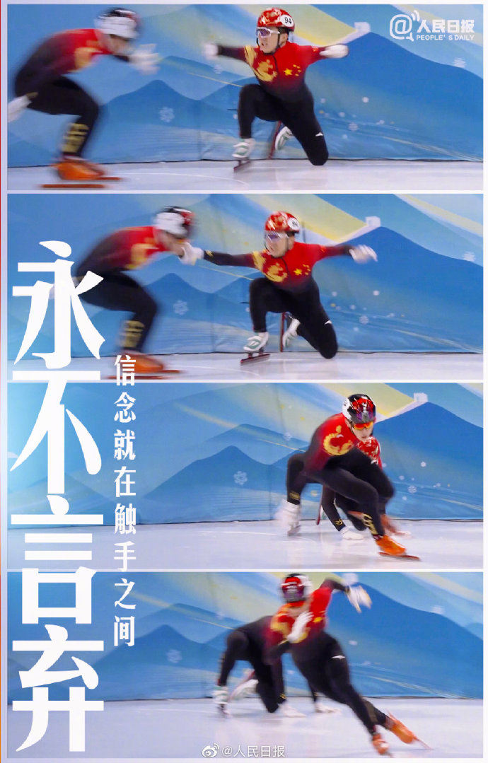 近日,在北京冬奥会短道速滑男子5000米接力半决赛上,比赛还剩下11圈时,中国队选手李文龙与对手发生碰撞摔出赛道,下一棒的任子威第一时间回头,与迅速爬起的李文龙拍手完成交接,继续奋起直追。摔倒了也继续拼,这样的精神,令人动容。网友们也纷纷在社交平台上留言,“这就是中国精神”“那一刻真的很感动”“中国队运动员都是好样的”。