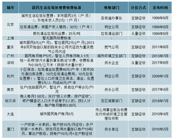 ▲我国部分城市居民生活垃圾处置费收费标准。产业信息网整理
