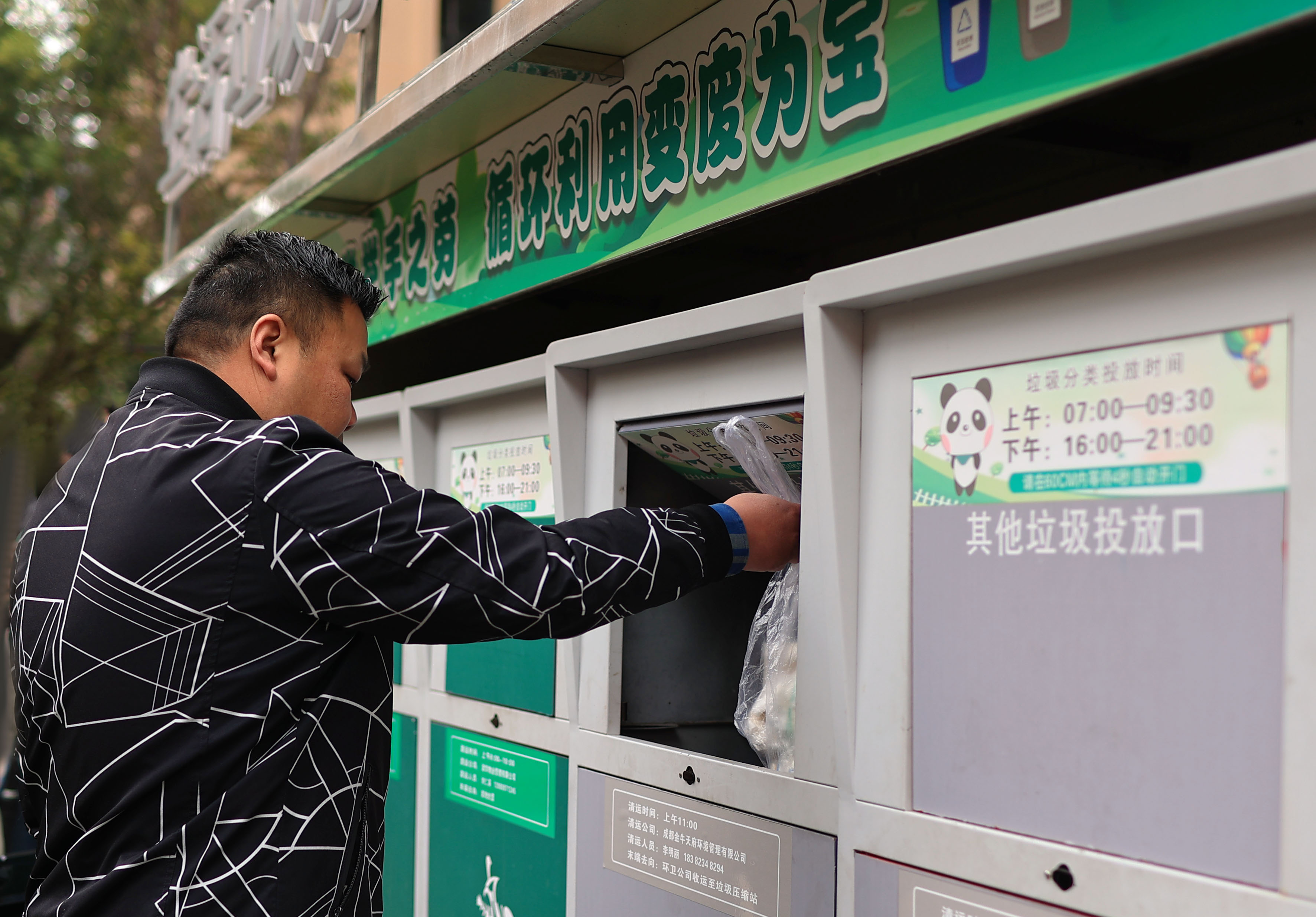 ▲成都金牛区,居民正在分类投放垃圾。资料图