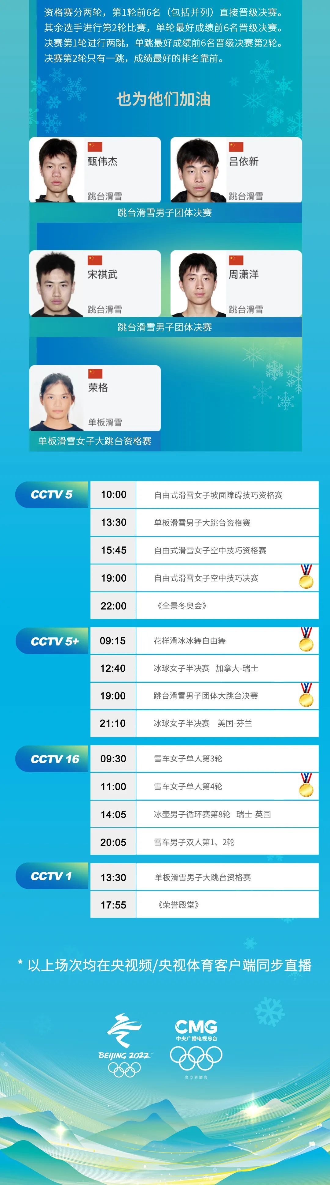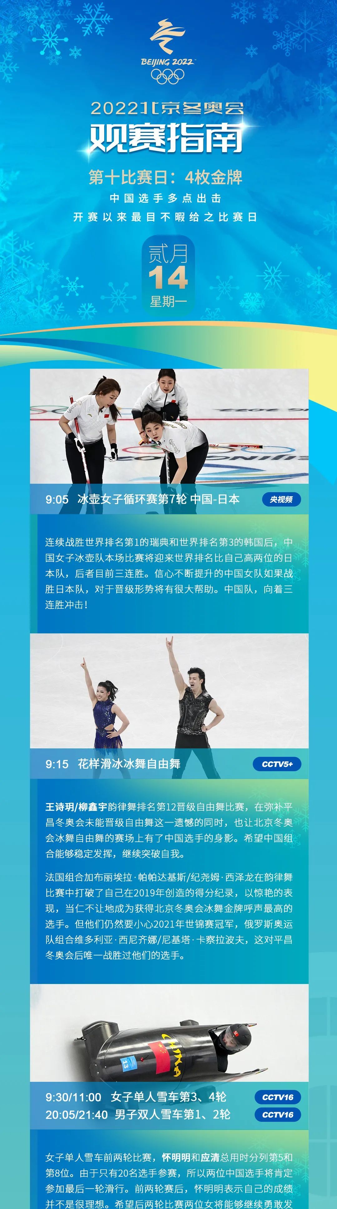 14日北京冬奥会赛程日历↓