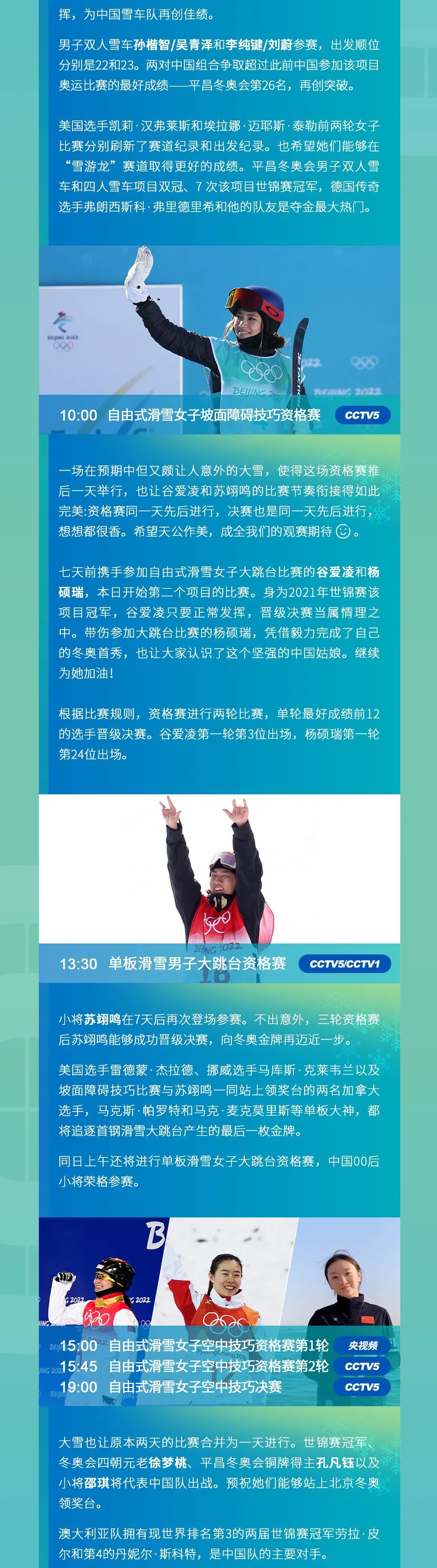谷爱凌苏翊鸣再登场!2月14日赛程速览→
