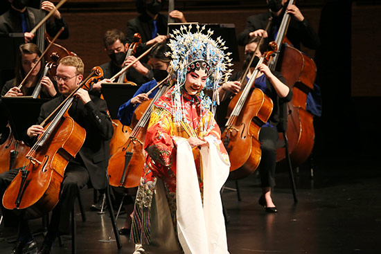 当晚,李焕之的《春节序曲》拉开音乐会的大幕,随之登场的京歌《梨花颂》将京剧唱腔与西方交响乐融为一炉,让观众领略了中西艺术交融的精彩。