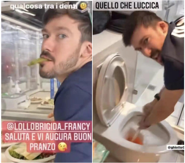 意大利一位运动员拍的搞笑视频,上一秒还在不断夸赞奥运村的伙食,下一秒就在宿舍努力通着厕所。
