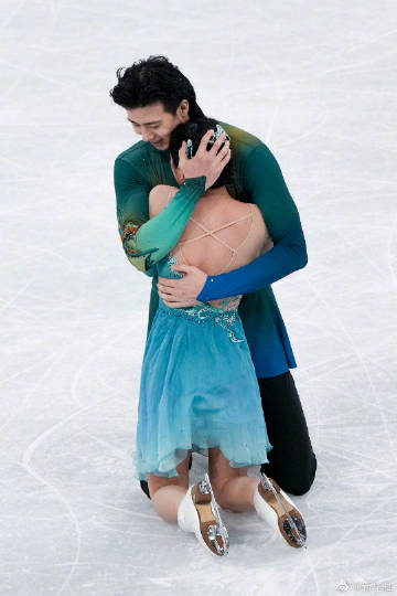 #冰上的青山绿水#【太美了!#王诗玥柳鑫宇深情演绎中国风#】2月14日,北京2022年冬奥会花样滑冰冰上舞蹈自由舞比赛在首都体育馆举行。中国选手王诗玥柳鑫宇精彩亮相,带观众领略令人心醉的花滑之美。赛后他俩热泪盈眶,紧紧拥抱。(摄影:王毓国、兰红光、马宁)
