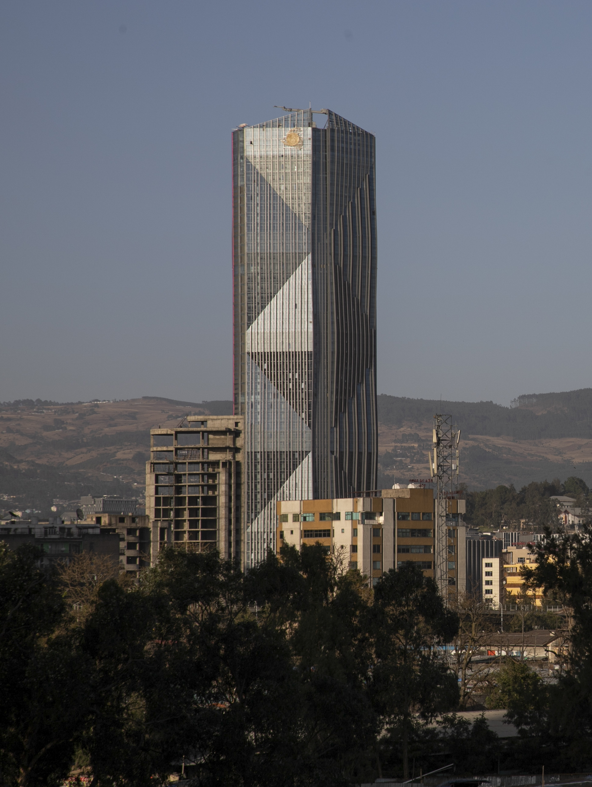 新华社照片,亚的斯亚贝巴,2022年2月14日 (国际·图文互动)(1)中企承建的东非最高建筑竣工 这是2月13日拍摄的位于亚的斯亚贝巴的埃塞俄比亚商业银行新总部大楼。 由中企承建的东非最高建筑埃塞俄比亚商业银行新总部大楼13日正式竣工。 新华社记者 汪平 摄