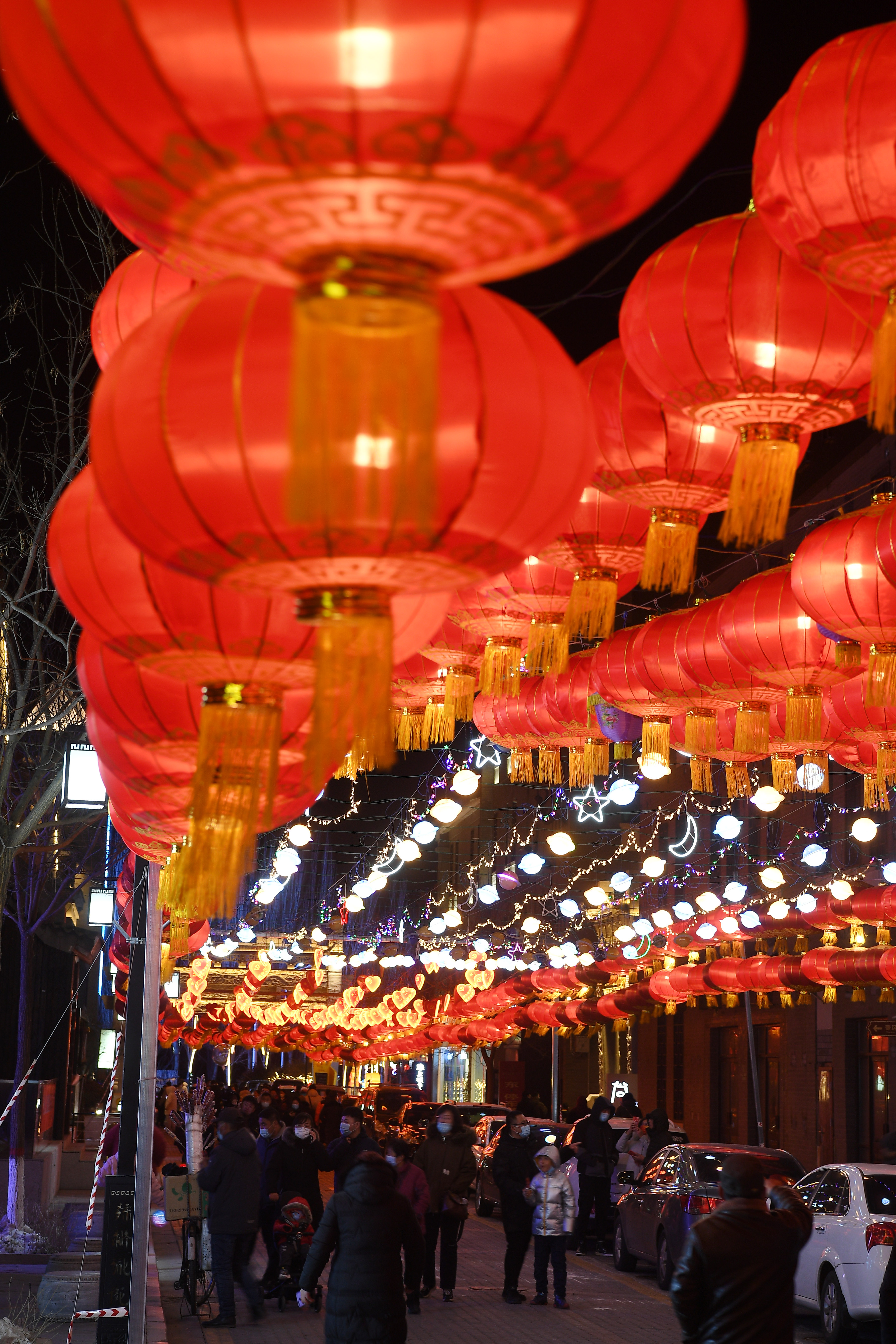 新华社照片,银川,2022年2月14日 银川:赏灯游园迎元宵 2月13日,人们在银川文化城观赏花灯。 元宵佳节将至,宁夏银川文化城文化大集迎春灯会迎来众多市民、游客前来游览。 新华社记者 王鹏 摄