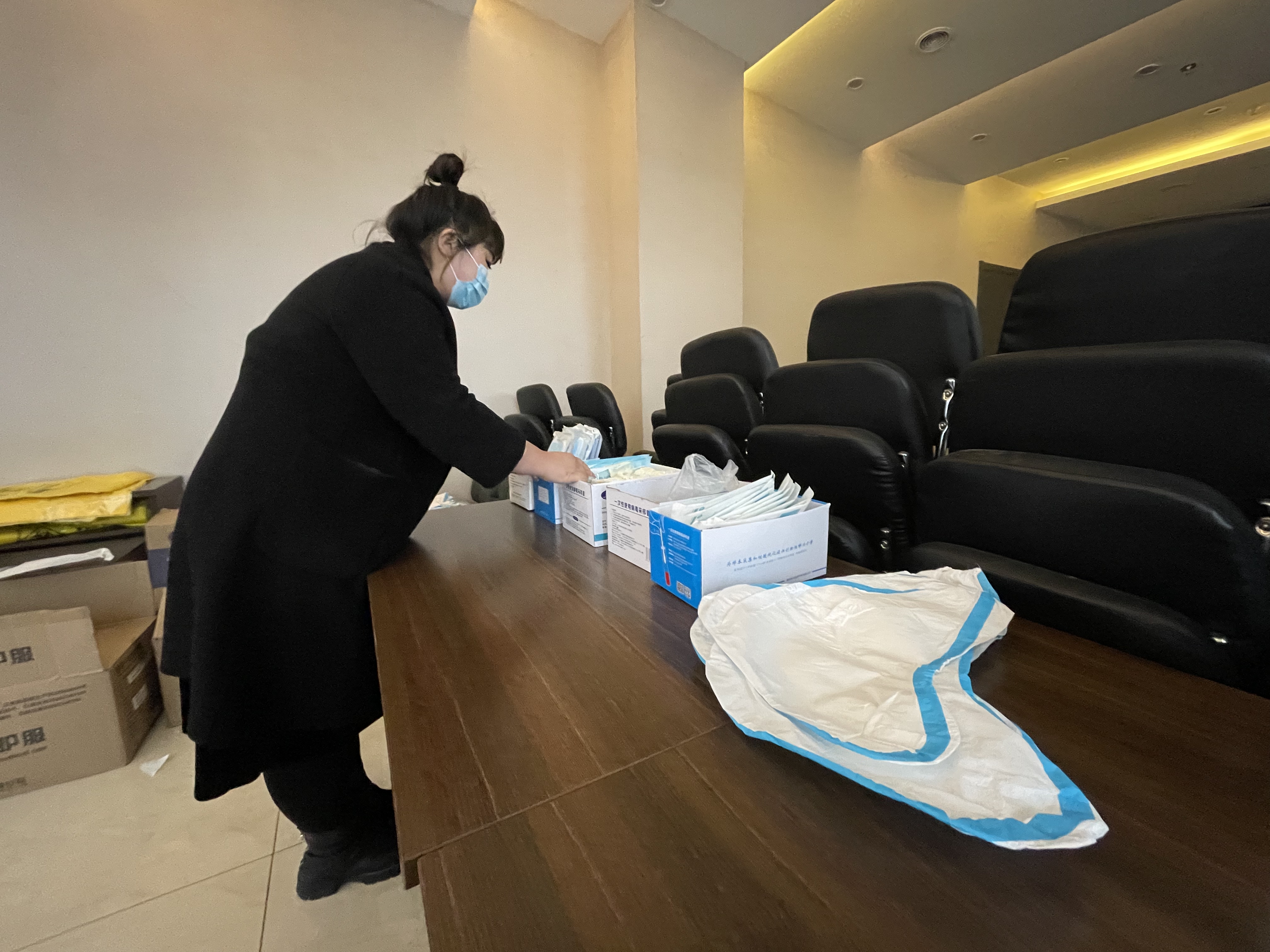 新华社照片,绥中(辽宁),2022年2月14日 辽宁绥中疫情集中隔离点和物资储备点见闻 2月13日,绥中县圣畔海岸酒店集中隔离点工作人员在整理防疫用品(手机照片)。此隔离点是绥中县一处较大的隔离点,从2月9日开始一共接收了85位集中隔离人员。由医护人员、后勤保障人员和行政管理人员等13人组成的工作队24小时驻守。 2月13日,记者先后对辽宁省葫芦岛市绥中县的一处集中隔离点和县城中心的一处物资储备点进行了探访。 新华社记者 李昂 摄