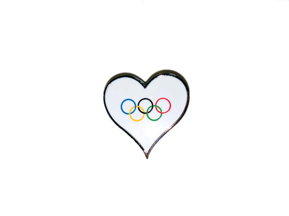 志愿者们收到巴赫主席赠送的心形奥运五环徽章。