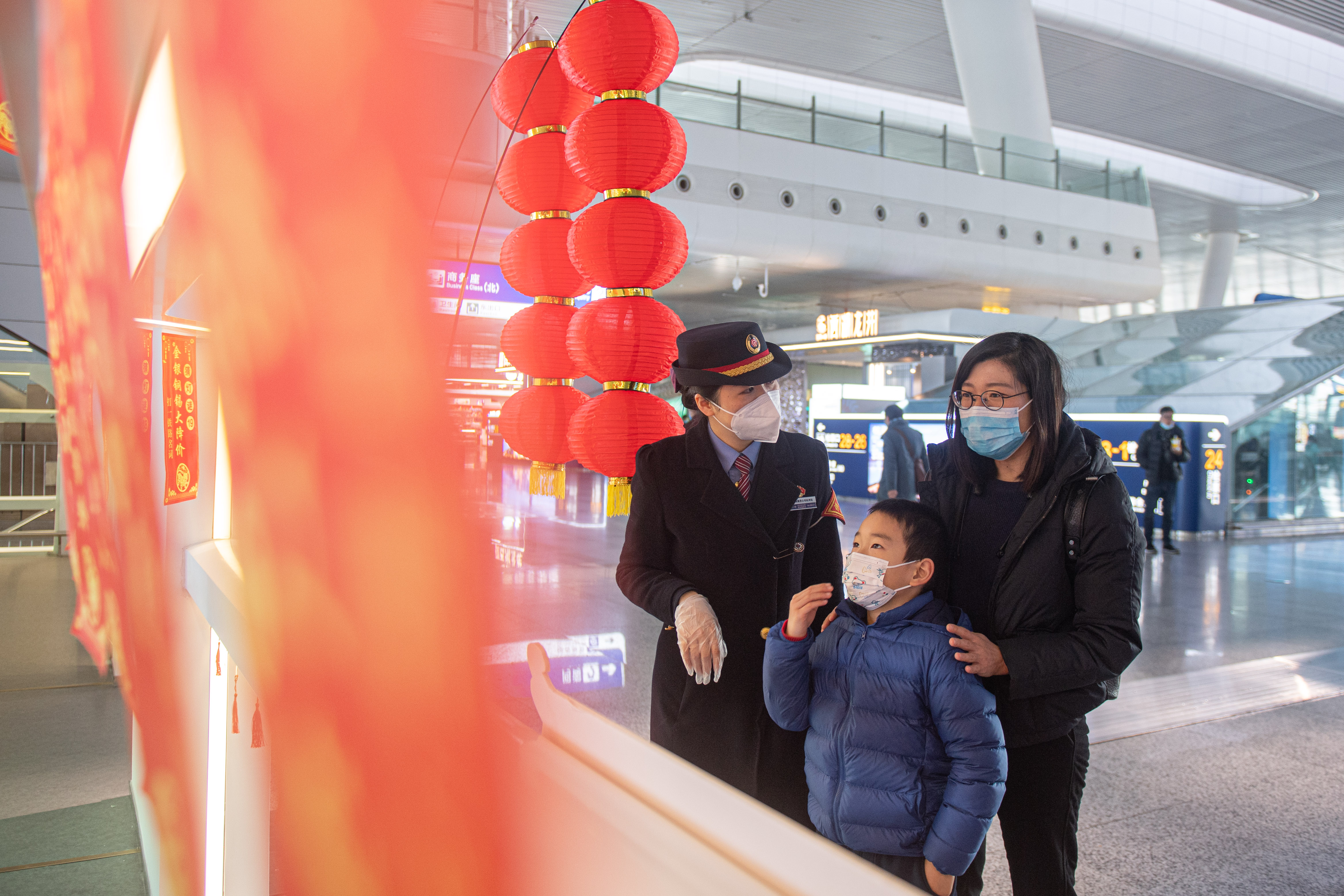 新华社照片,杭州,2022年2月14日 热热闹闹迎元宵 2月14日,旅客们在杭州东站候车室内猜灯谜。 元宵佳节将至,各地群众通过丰富多彩的活动热热闹闹迎元宵。 新华社记者 江汉 摄