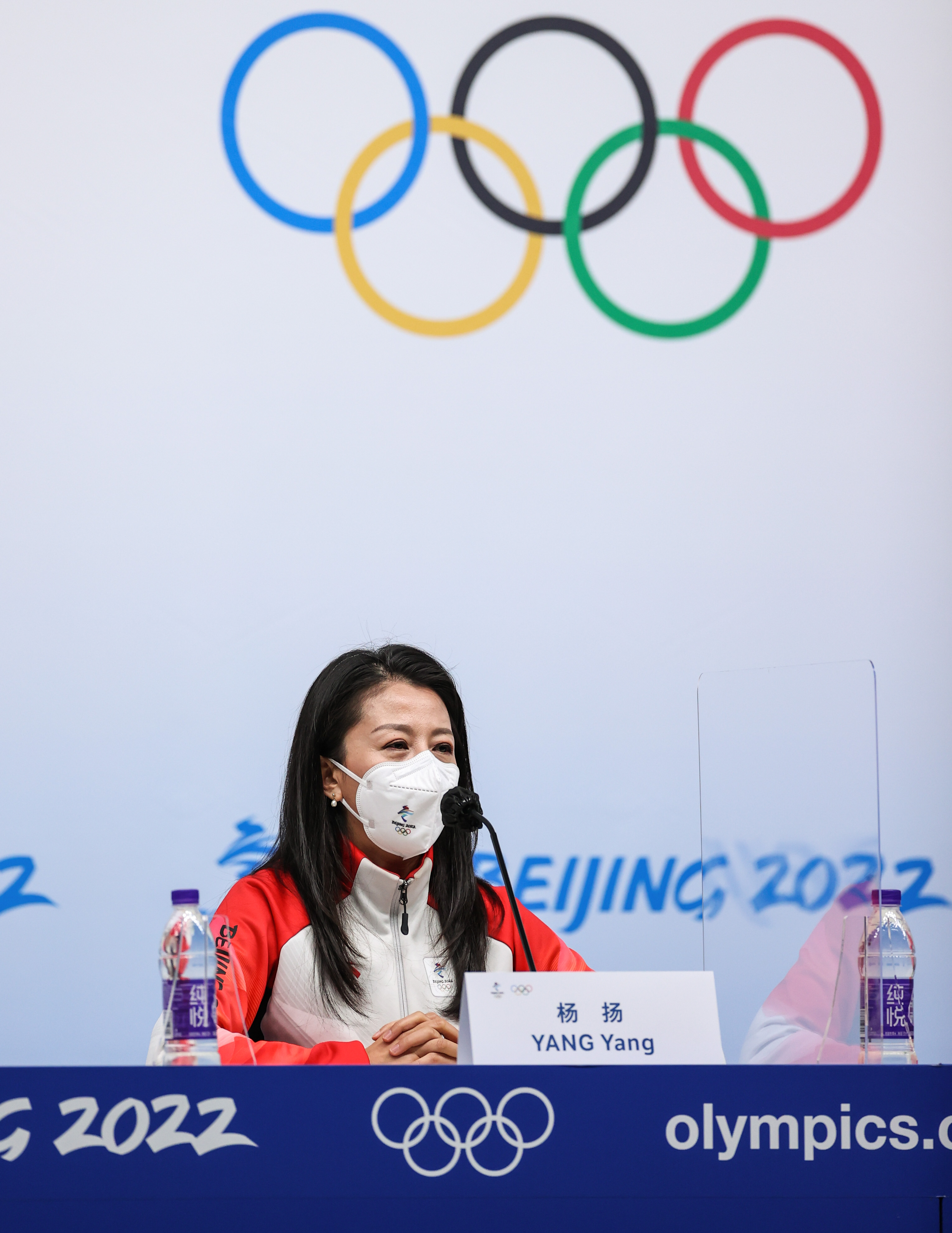 2月14日,北京冬奥组委运动员委员会主席杨扬在每日例行新闻发布会上。新华社记者杨磊摄