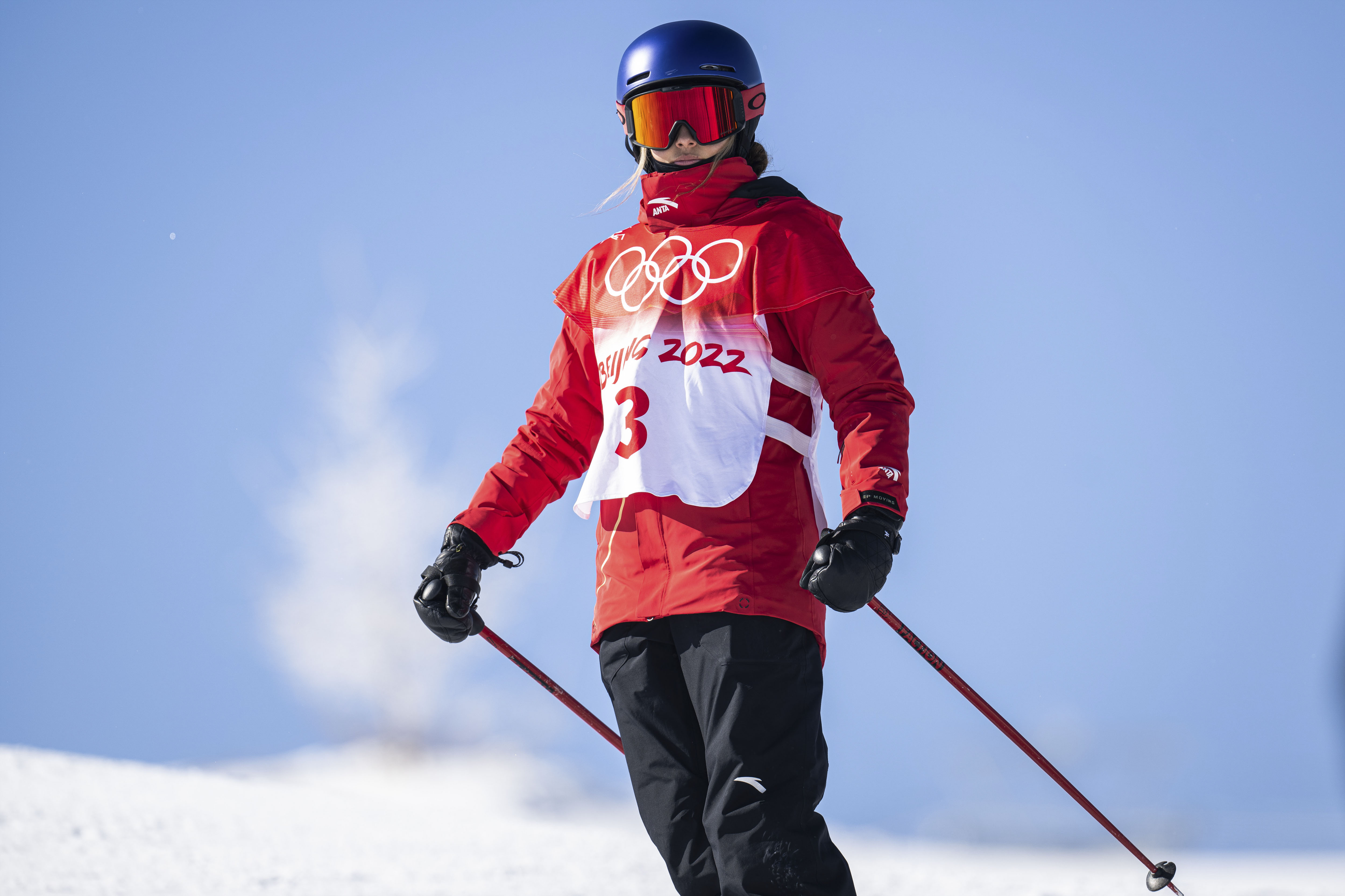 2月14日,中国选手谷爱凌在北京冬奥会自由式滑雪女子坡面障碍技巧资格赛前。新华社记者肖艺九摄