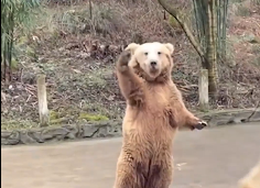 ·贵州贵阳一动物园小熊招手求游客投食,网友:这下有理由怀疑是人演的了!