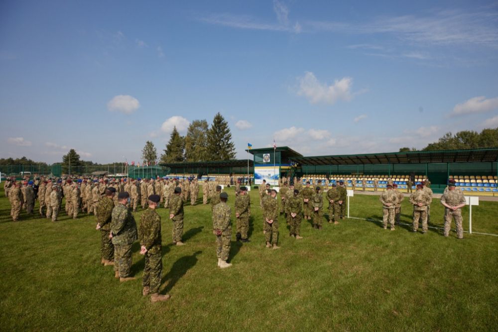 2020年9月17日,来自乌克兰、美国、英国等国的军人参加在乌克兰西部利沃夫州举行的代号为“快速三叉戟-2020”的多国联合军事演习开幕式。(新华社发)