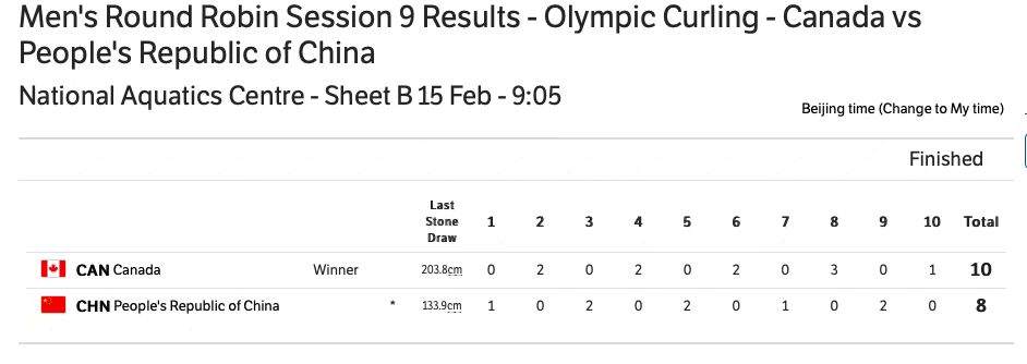 刚刚,在北京冬奥会男子冰壶循坏赛中, 中国队迎战经验丰富的加拿大队,虽然中国队的小伙子们表现顽强,但依然以8∶10负于加拿大队。今天中国男子冰壶队还将面对一日双赛的考验,今晚将迎战挪威队。继续加油!