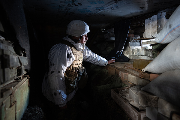 当地时间2022年2月5日,乌克兰顿涅茨克,乌克兰士兵站岗巡逻。人民视觉 图