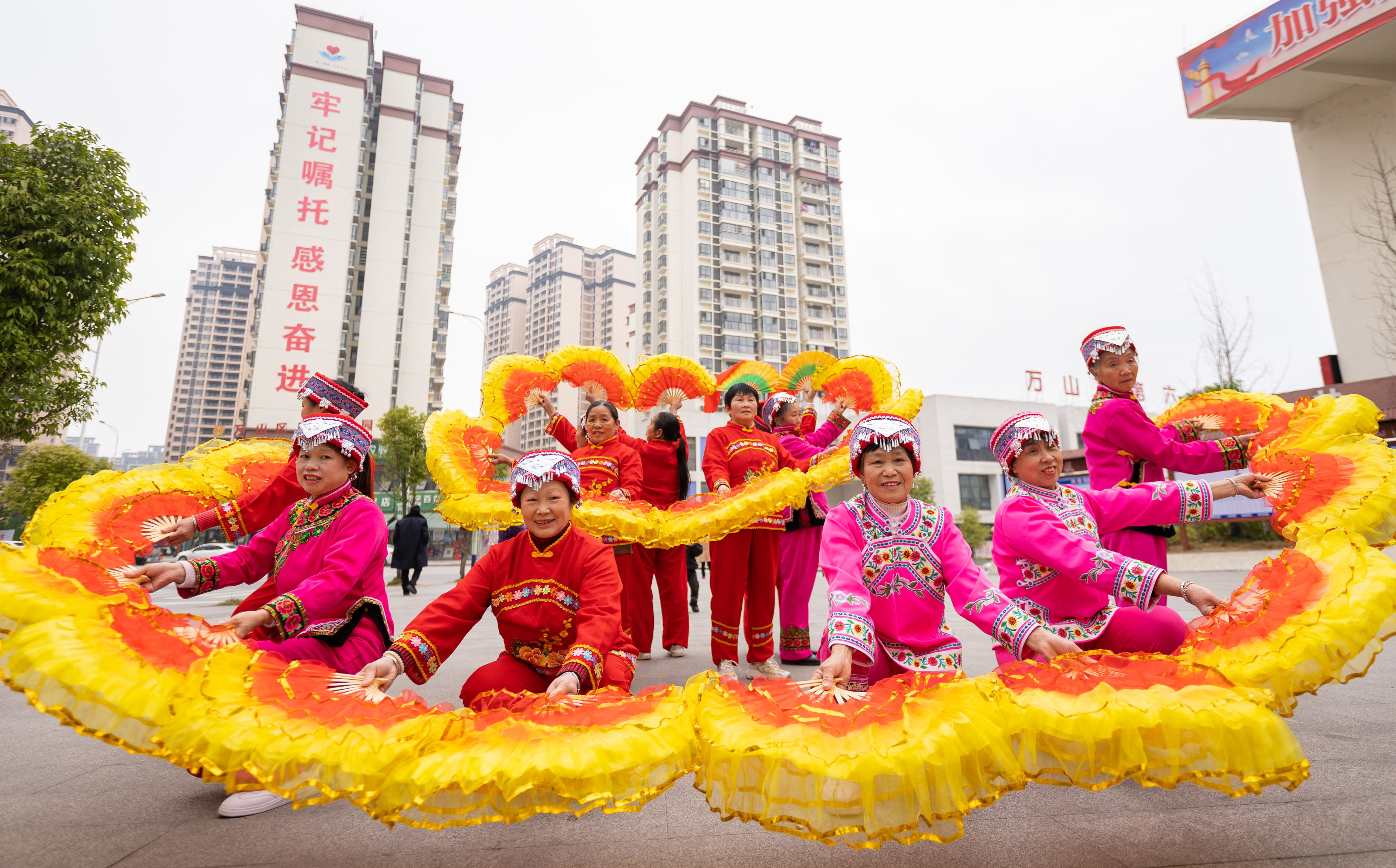 旺家花园社区群众在表演节目。(万山区融媒体中心供图)
