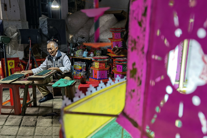 如今,邹宏达的儿子、儿媳和两个孙女也和他一起做花灯。“现在老了,比不上年轻力壮的时候,但还可以继续再做四五年。”邹宏达说。