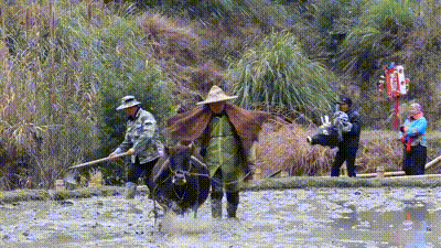 近日,在“春牛歌”的器乐声中,一支由数十人组成的“舞春牛”队伍走进江西省崇义县上堡梯田,来到村民家门前的晒谷场上跳起了“春牛舞”。