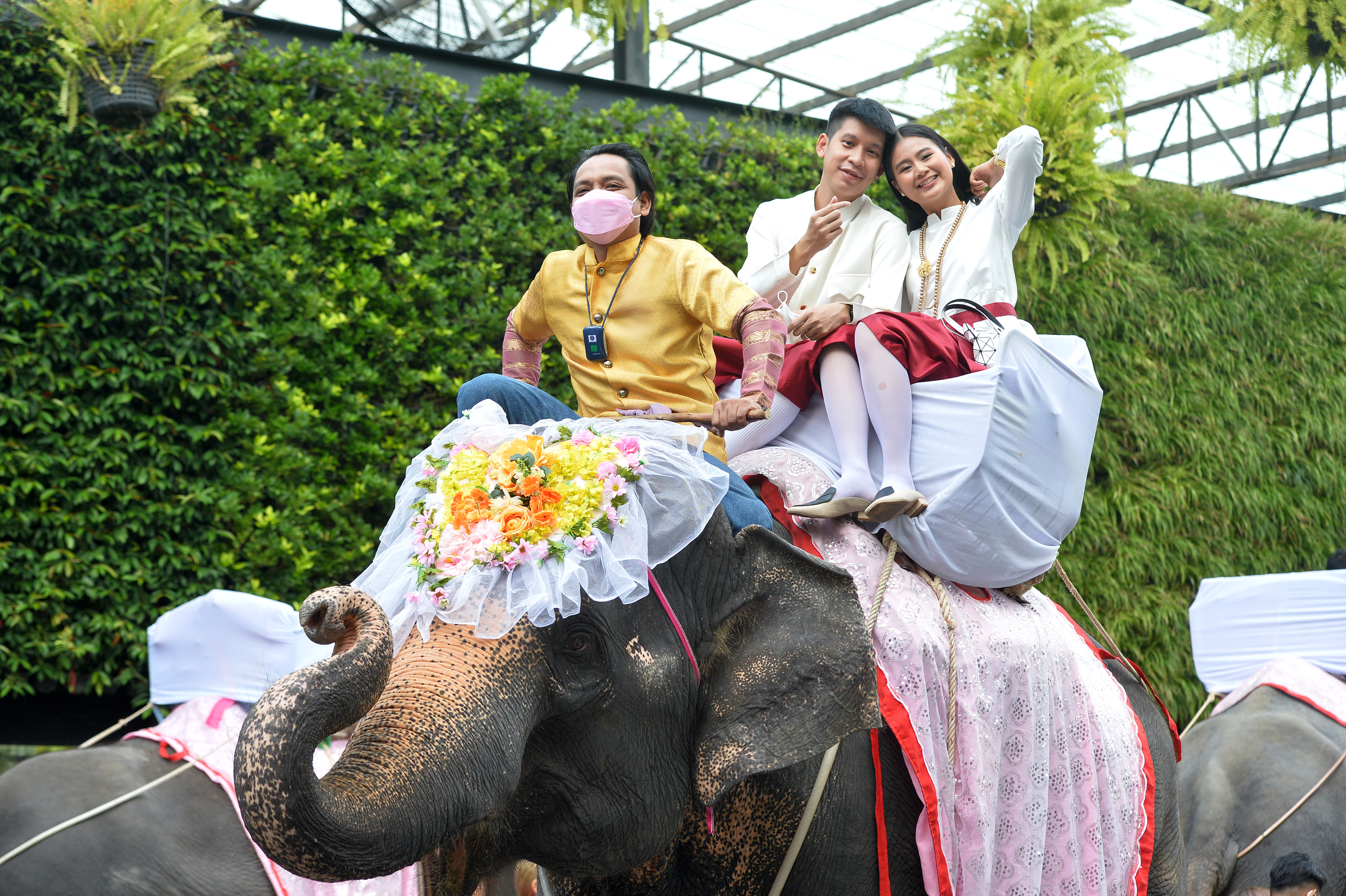 新华社照片,芭提雅(泰国),2022年2月15日 (国际)(5)泰国芭提雅:象背上的婚礼 2月14日,在泰国芭提雅东芭乐园,新人骑乘大象参加婚礼。 当日,泰国芭提雅东芭乐园为9对新人举行了一场别开生面的“象背婚礼”,祝福他们有情人终成眷属。 新华社发(拉亨 摄)