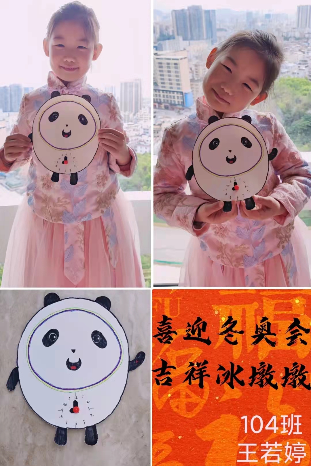 在冬奥会吉祥物冰墩墩一“墩”难求的情况下,一年级的王若婷,六年级的戴国睿、张苏芳等用各种材质精心制作,拥有了属于自己的独特的“冰墩墩”。