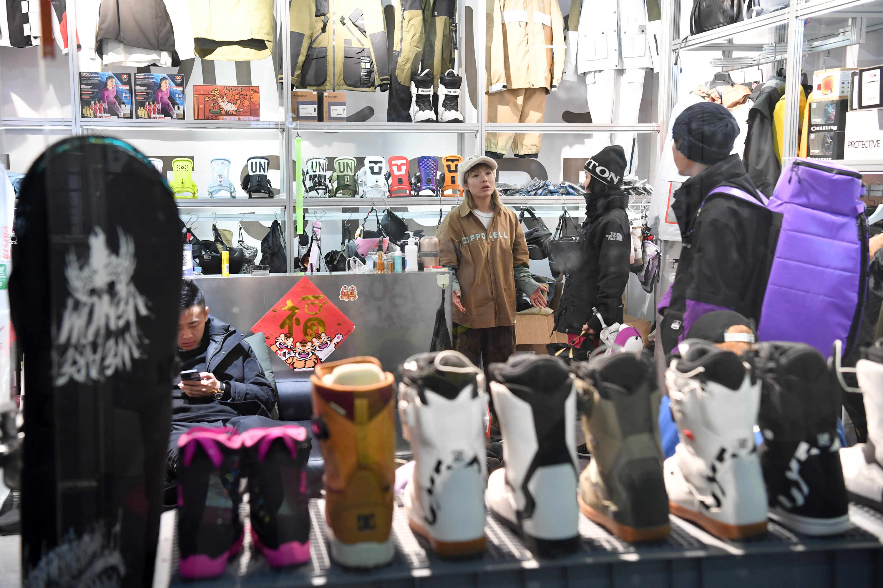新华社照片,太白(陕西),2022年2月15日 秦岭脚下掀起滑雪热潮 2月14日,滑雪爱好者在鳌山滑雪场一家商店内购买滑雪装备。 近年来,陕西省雪上运动场馆建设水平稳步增长,群众参与滑雪运动热情提高。位于秦岭鳌山脚下的陕西太白县鳌山滑雪场,凭借良好的环境和雪道设施吸引了众多游客和滑雪爱好者。为满足省内外旺盛客流的需求,滑雪场还开设了夜场。今年春节期间,鳌山滑雪场客流量较去年同期增长约50%。 鳌山滑雪场2016年底投入运营,现有注册会员2万多人,入驻滑雪俱乐部11家。 新华社记者 邵瑞 摄