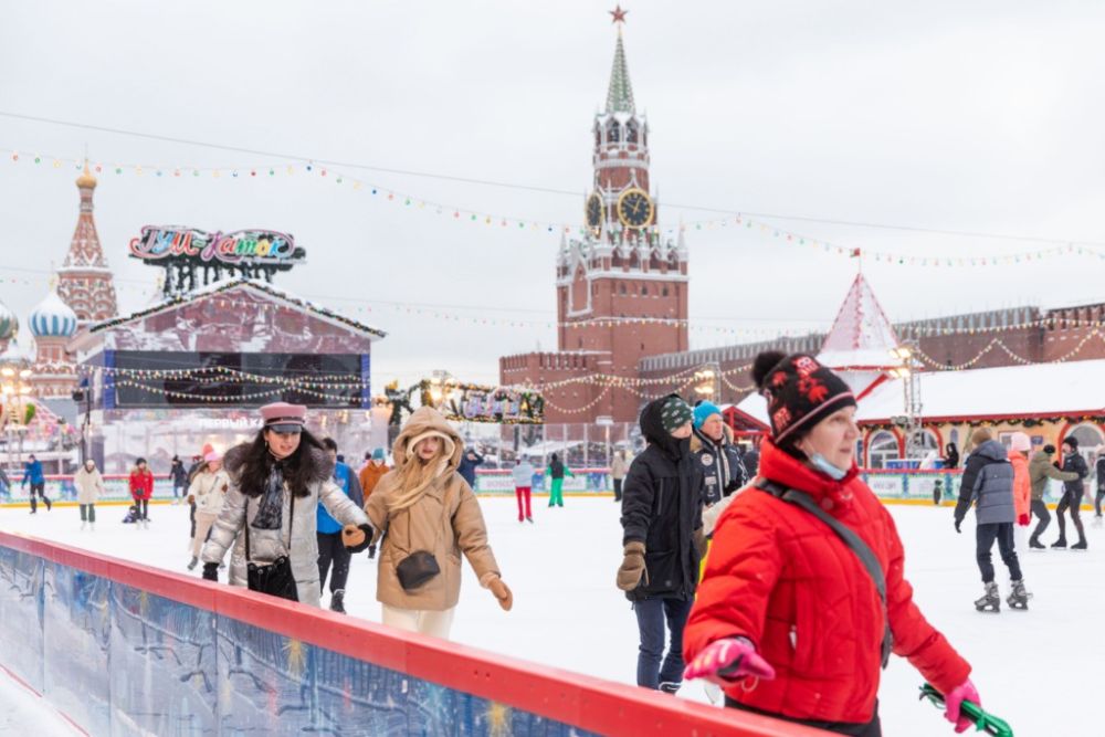 1月26日,人们在俄罗斯首都莫斯科古姆百货商场滑冰场滑冰。(新华社记者白雪骐摄)