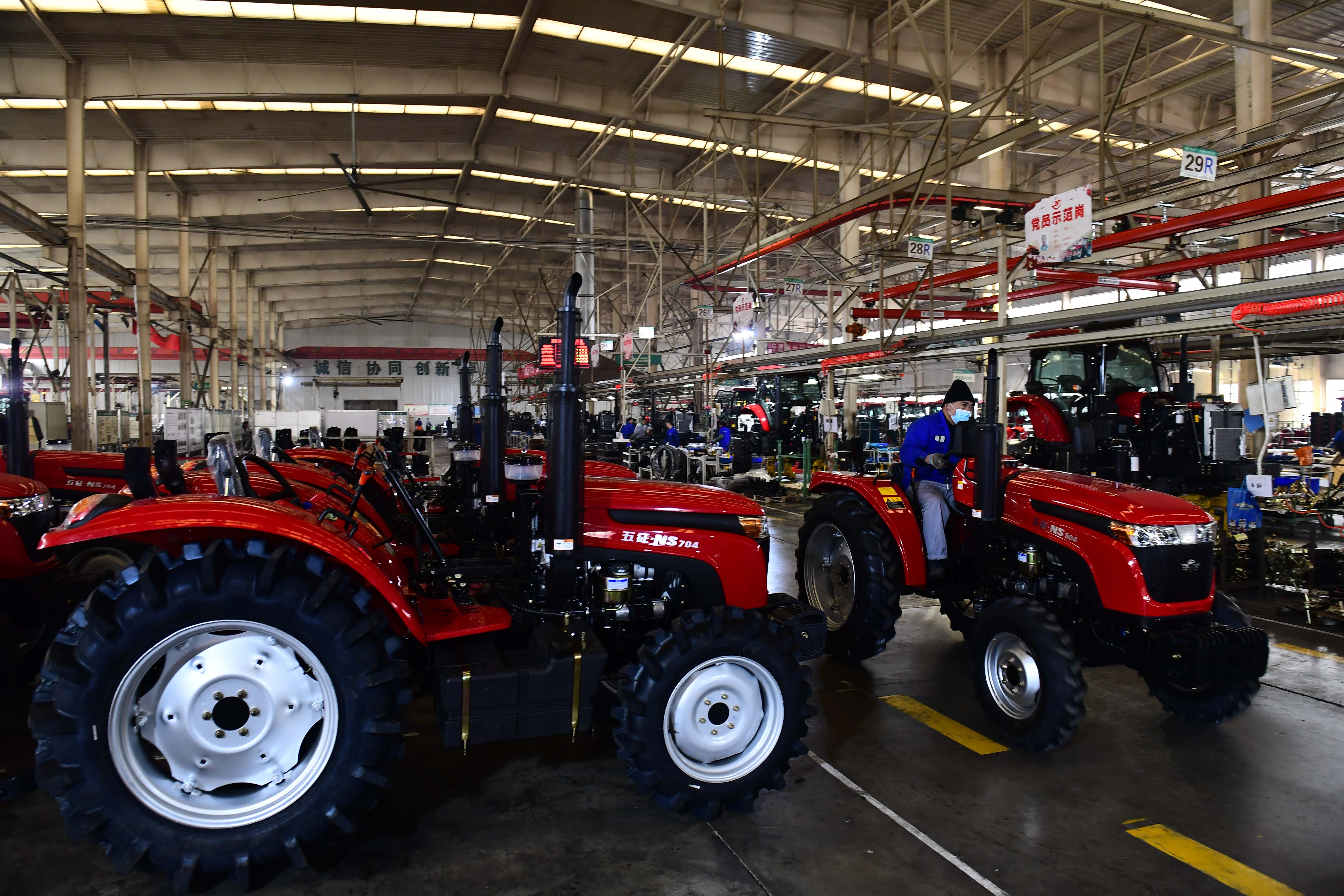 新华社照片,济南,2022年2月15日 春耕春管忙 山东农机企业加紧生产保订单 2月15日,在山东五征集团山拖农业装备有限公司,工人在生产线上装配农用拖拉机。 眼下正值春耕春管关键期。在农业大省山东,农机生产企业加紧生产订单农机、农具产品,以满足市场需求。 新华社记者 郭绪雷 摄