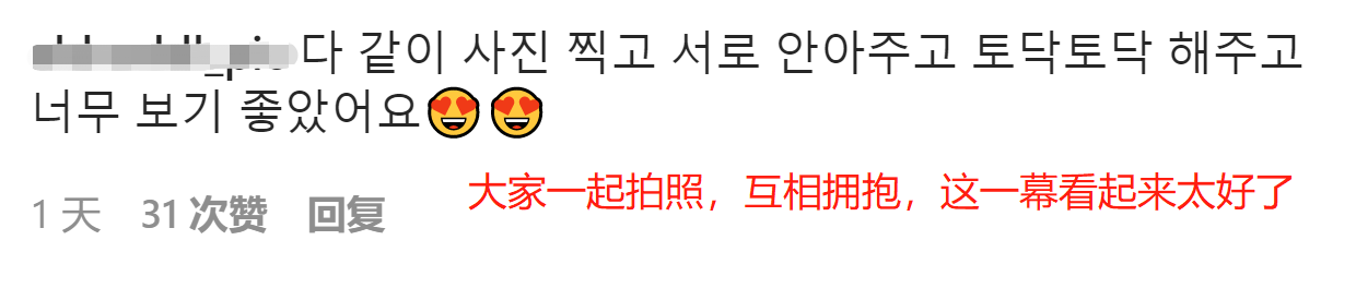 照片发布后,很快就收获了2万多个点赞。韩国网友纷纷留言称赞,有网友写道,“看到这一幕,我明白了什么是真正的奥林匹克精神。太暖心了,瞬间让人泪目。尊重所有的选手。”
