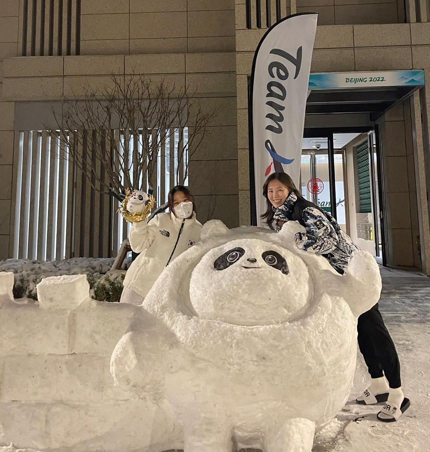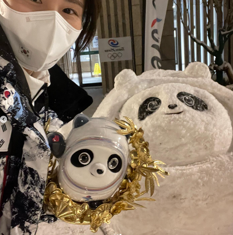 在13日晚举行的北京冬奥会短道速滑比赛中,由金雅朗率领的韩国队摘银,喜获金墩墩。第二天(14日),金雅朗晒出与队友朴智允手持金墩墩,轮流与雪人冰墩墩的合影,两人笑容灿烂。