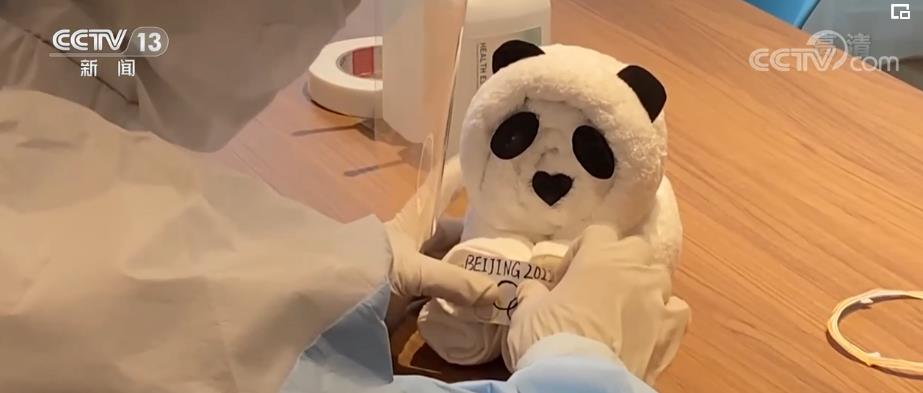 在公寓内整理、清洁房间的工作人员也发挥各自特长,就着现有的物品,制作可爱的摆件,比如用毛巾叠的“冰墩墩”。