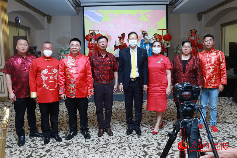泰中文联主席傅文通与泰方嘉宾在元宵晚会上合影。人民网记者 孙广勇摄
