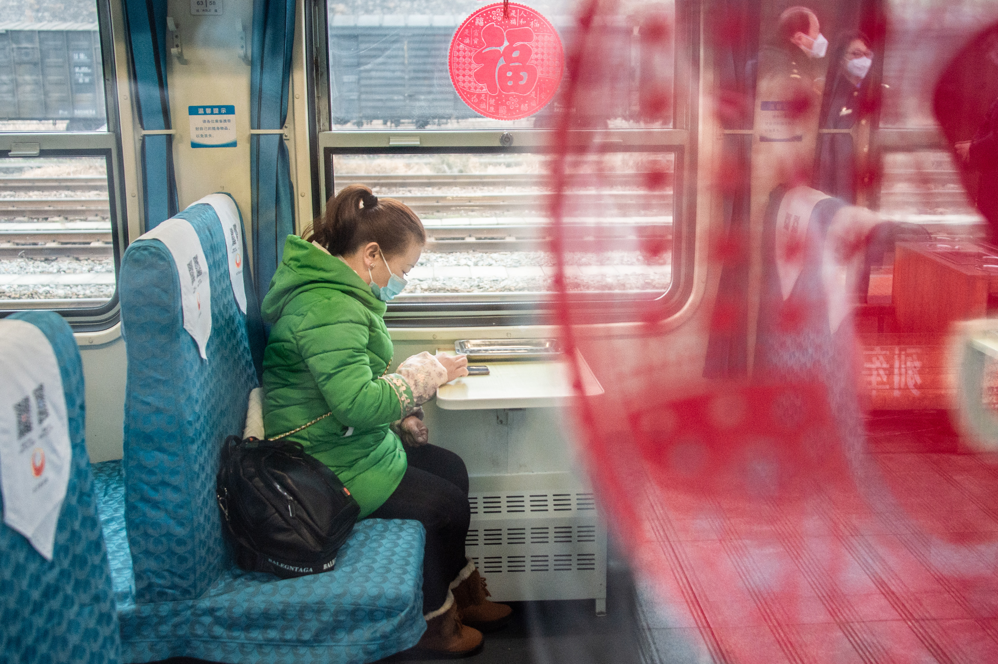 新华社照片,武汉,2022年2月15日 大别山里的公益“慢火车” 2月15日,乘客在6025次列车上。 元宵节清晨,一列绿皮火车迎着太阳升起的方向缓缓行驶在大别山区。从湖北麻城开往江西九江的这趟公益“慢火车”,已在这条线路上运行二十多年。 运行在京九线上的6025/6026次列车于上世纪90年代开通运行,全程约223公里,历时4小时17分,沿线停靠7个车站、6个乘降所,票价最高15.5元。 设计时速120公里的“慢火车”其实并不慢,但为了方便沿途居民,大站小站列车都会停靠。所以,这趟车的平均运行时速仅50多公里。 开通以来,这趟列车穿行大别山地区,成为沿途人们外出务工的“致富车”、进城卖货的“顺风车”、出门上学的“求学车”、走亲访友的“亲情车”。 新华社发(伍志尊摄)