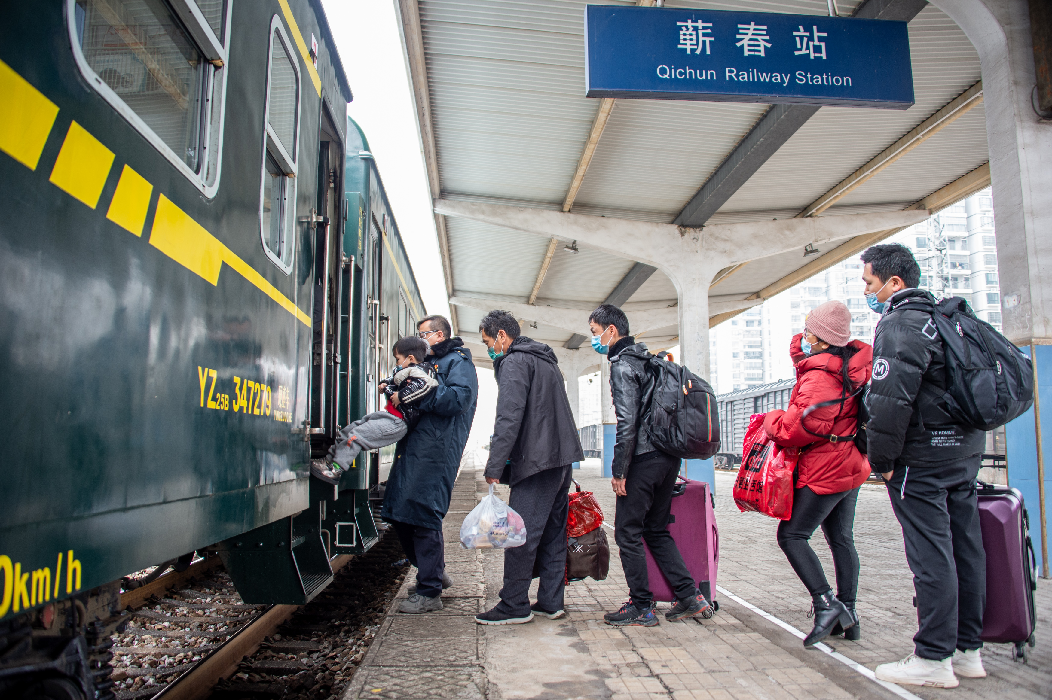 新华社照片,武汉,2022年2月15日 大别山里的公益“慢火车” 2月15日,列车员(左二)帮助乘客登上6025次列车。 元宵节清晨,一列绿皮火车迎着太阳升起的方向缓缓行驶在大别山区。从湖北麻城开往江西九江的这趟公益“慢火车”,已在这条线路上运行二十多年。 运行在京九线上的6025/6026次列车于上世纪90年代开通运行,全程约223公里,历时4小时17分,沿线停靠7个车站、6个乘降所,票价最高15.5元。 设计时速120公里的“慢火车”其实并不慢,但为了方便沿途居民,大站小站列车都会停靠。所以,这趟车的平均运行时速仅50多公里。 开通以来,这趟列车穿行大别山地区,成为沿途人们外出务工的“致富车”、进城卖货的“顺风车”、出门上学的“求学车”、走亲访友的“亲情车”。 新华社发(伍志尊摄)