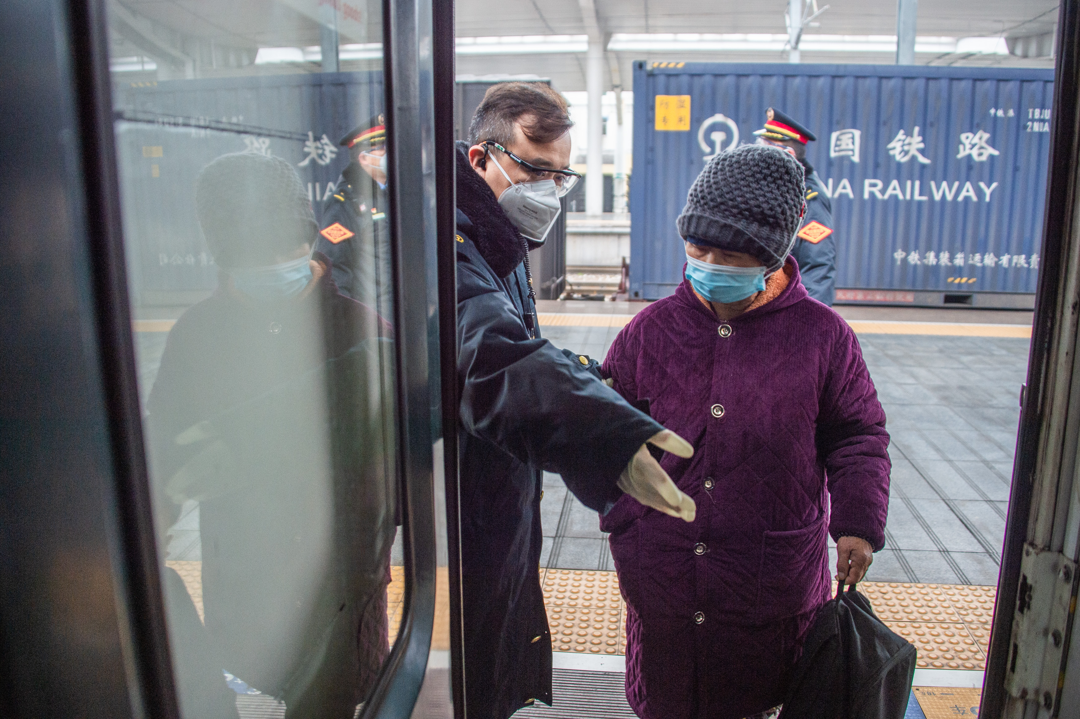 新华社照片,武汉,2022年2月15日 大别山里的公益“慢火车” 2月15日,列车员引导乘客登上6025次列车。 元宵节清晨,一列绿皮火车迎着太阳升起的方向缓缓行驶在大别山区。从湖北麻城开往江西九江的这趟公益“慢火车”,已在这条线路上运行二十多年。 运行在京九线上的6025/6026次列车于上世纪90年代开通运行,全程约223公里,历时4小时17分,沿线停靠7个车站、6个乘降所,票价最高15.5元。 设计时速120公里的“慢火车”其实并不慢,但为了方便沿途居民,大站小站列车都会停靠。所以,这趟车的平均运行时速仅50多公里。 开通以来,这趟列车穿行大别山地区,成为沿途人们外出务工的“致富车”、进城卖货的“顺风车”、出门上学的“求学车”、走亲访友的“亲情车”。 新华社发(伍志尊摄)