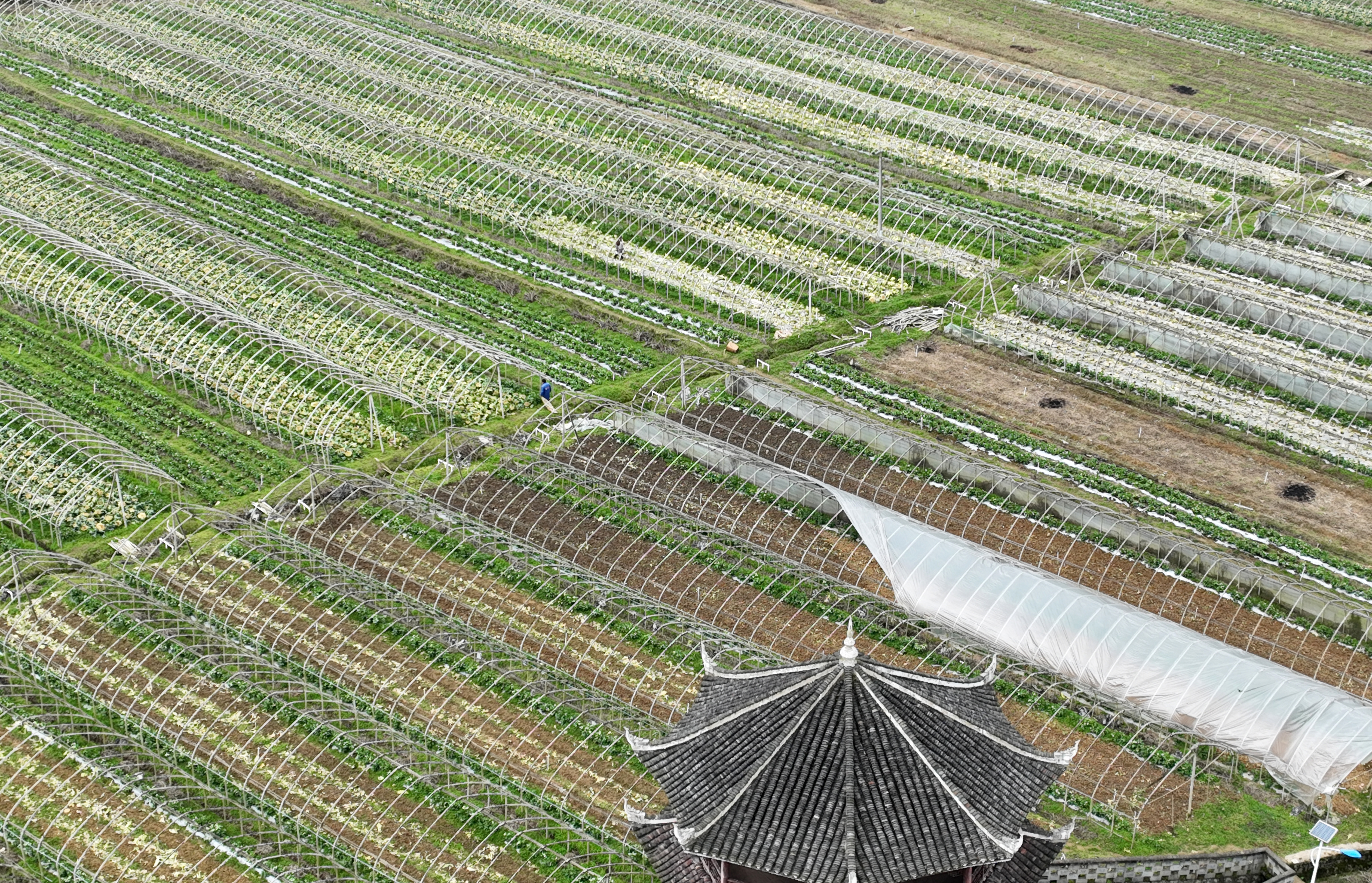 新华社照片,遵义(贵州),2022年2月15日 贵州:春回大地 不误农时 2月14日,村民在贵州省遵义市凤冈县绥阳镇一农业产业园区劳作(无人机照片)。 立春过后,随着气温逐渐回升,贵州省各地有序推进农业生产工作。农民抢抓节气,不误农时抓紧劳作,田间地头一派忙碌景象。 新华社发(罗星汉摄)