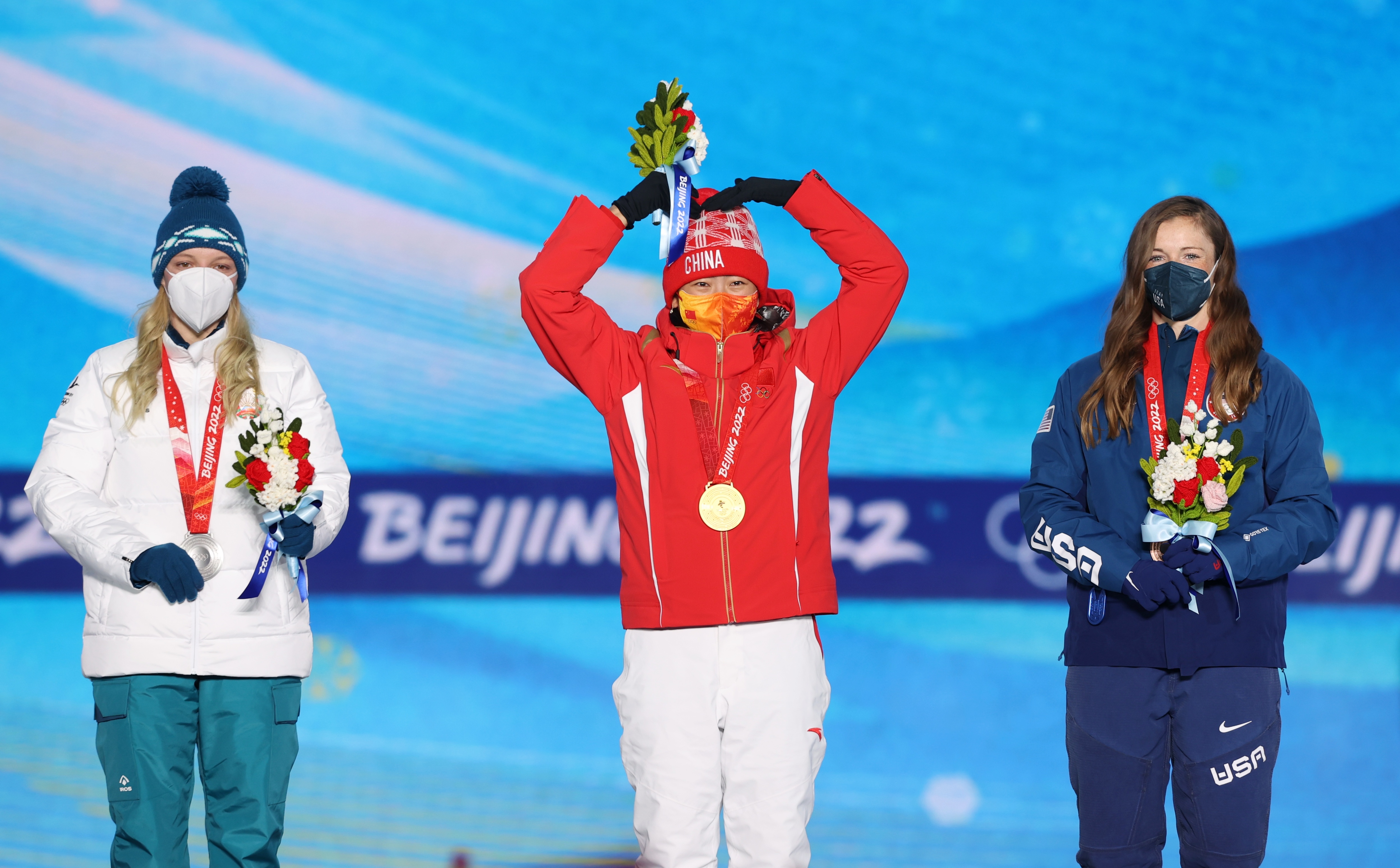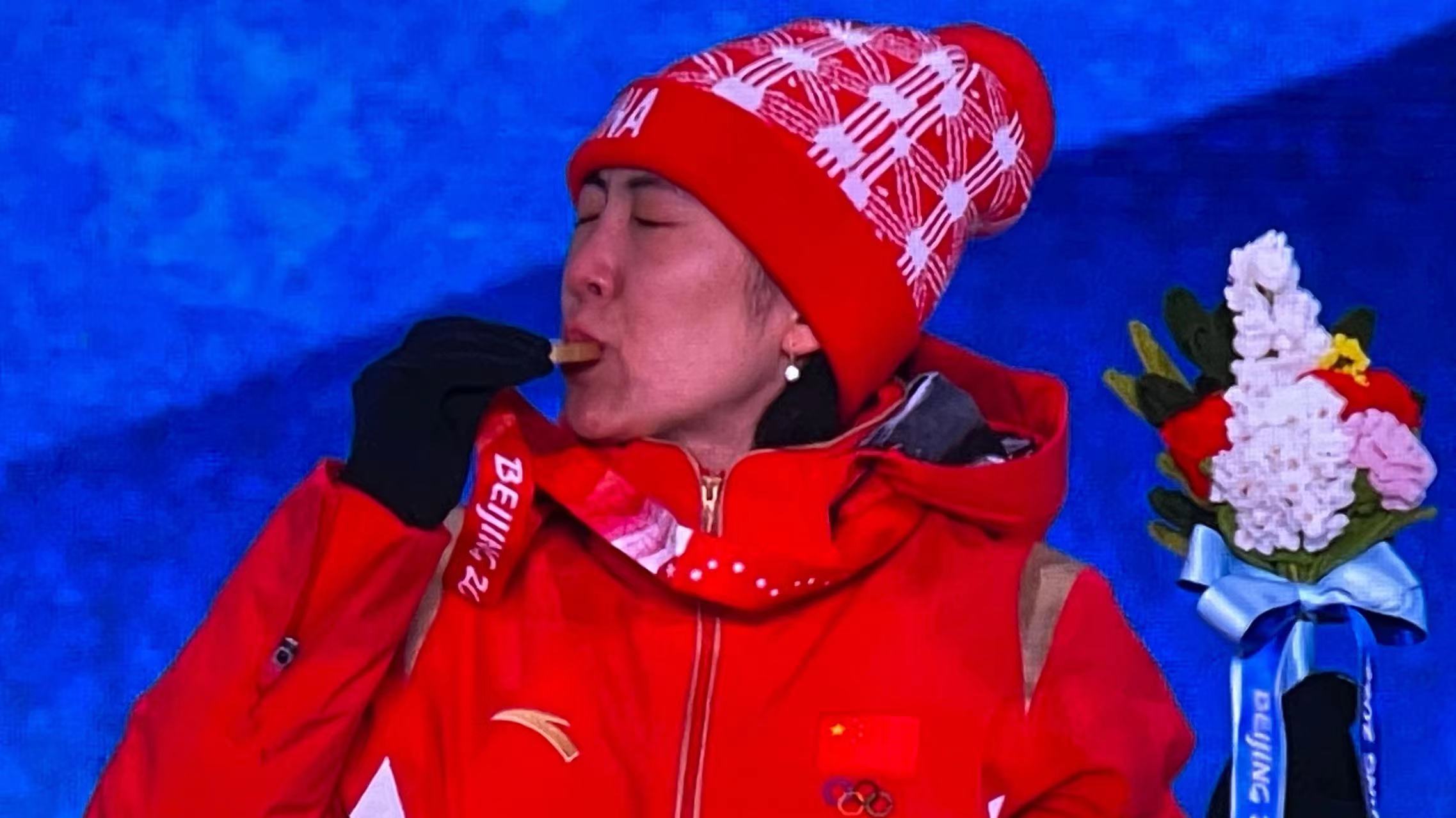 四战冬奥终于夺冠,徐梦桃亲吻金牌热泪盈眶
