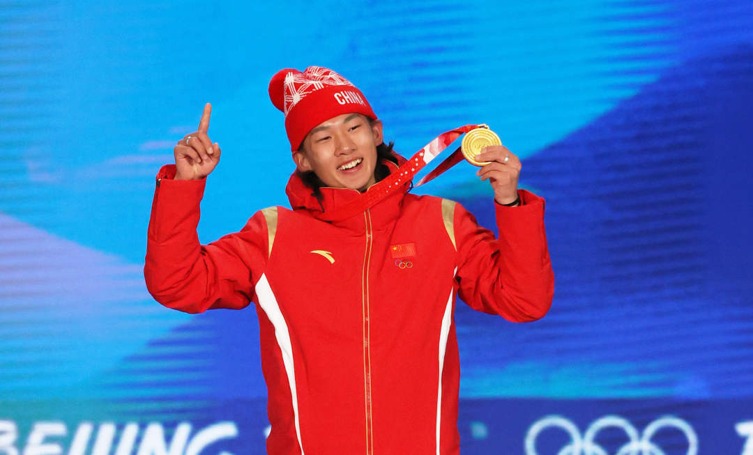 15日,北京冬奥会单板滑雪男子大跳台决赛,苏翊鸣夺金。在今晚的颁奖仪式上,他手持金牌,面带笑容,十分兴奋。