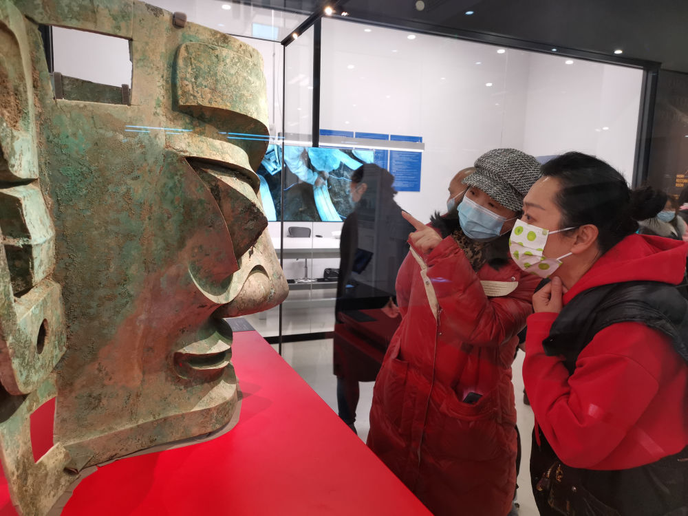 三星堆青铜大面具15日在四川省广汉市的三星堆博物馆临时展出,让前来参观的游客“先睹为快”。详情>>>