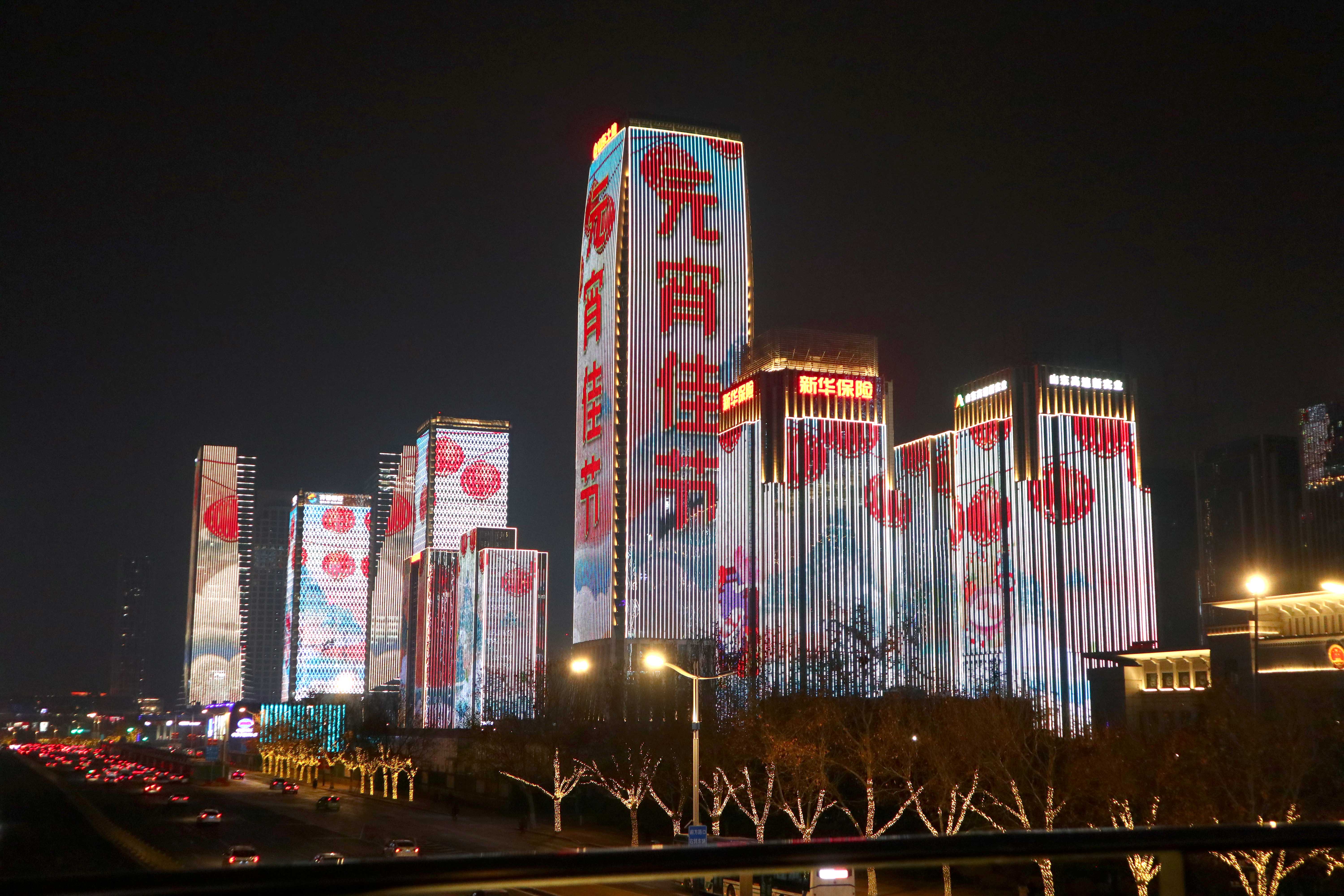 新华社照片,济南,2022年2月15日 花样元宵节 2月15日,山东省济南市的建筑群亮灯庆贺元宵佳节。 随着元宵节到来,各地举行丰富多彩的活动,热热闹闹庆佳节。 新华社记者徐速绘摄