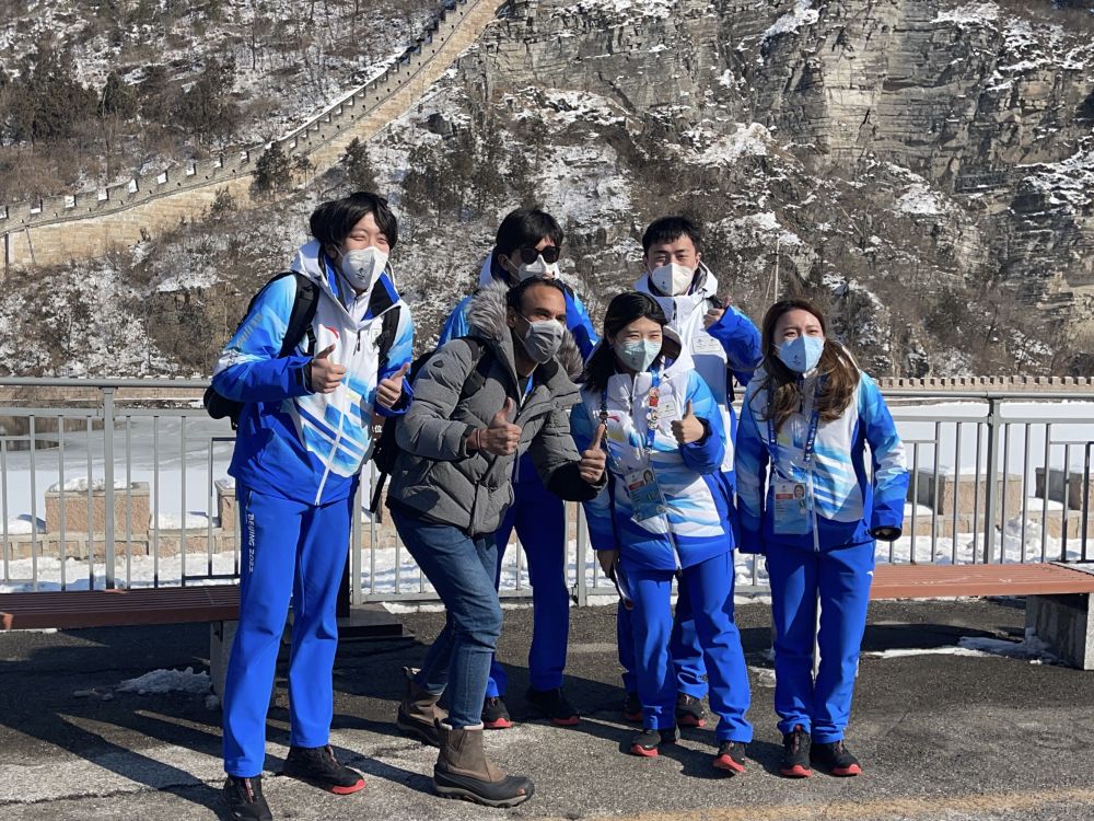 下午1时许,在北京冬奥组委工作人员和志愿者的带领下,记者们从主媒体中心乘坐专用车辆到达居庸关长城。记者们在参观途中一边欣赏长城的壮观景色,一边拿出手机合影留念,还有人选择以视频通话的形式把这份快乐实时分享给家人和朋友。